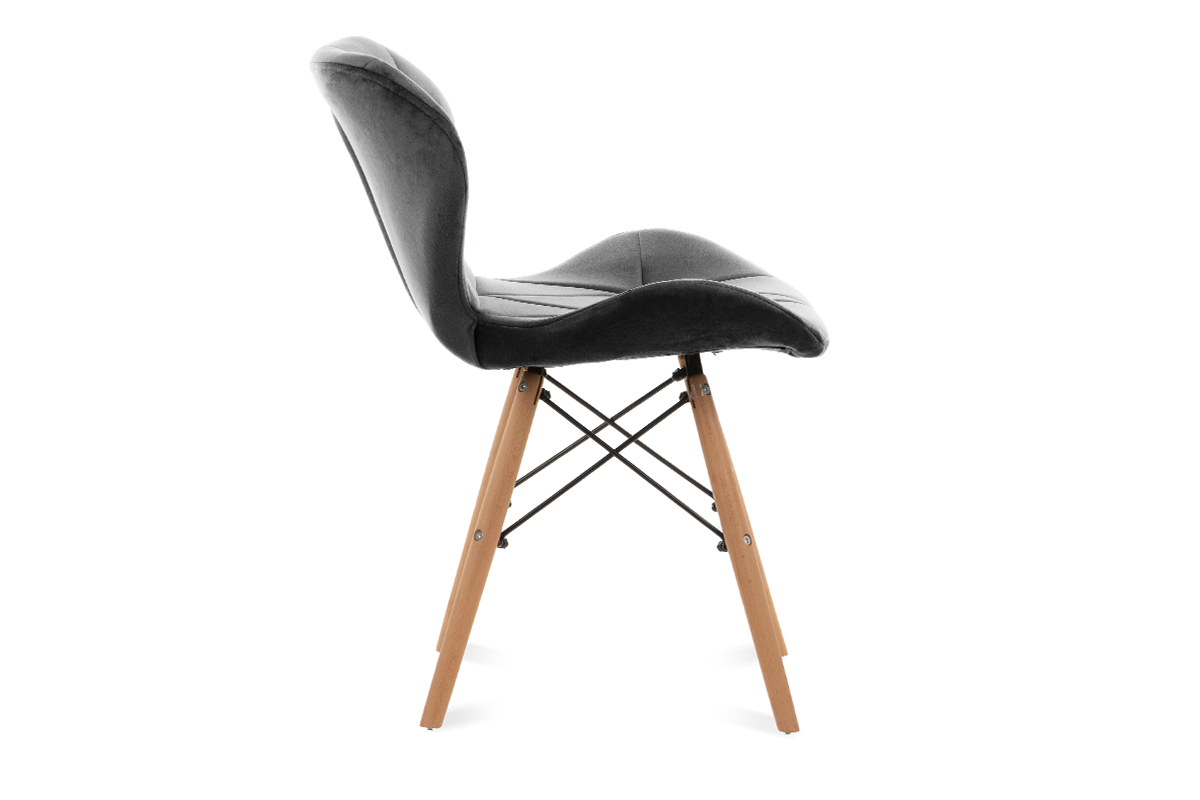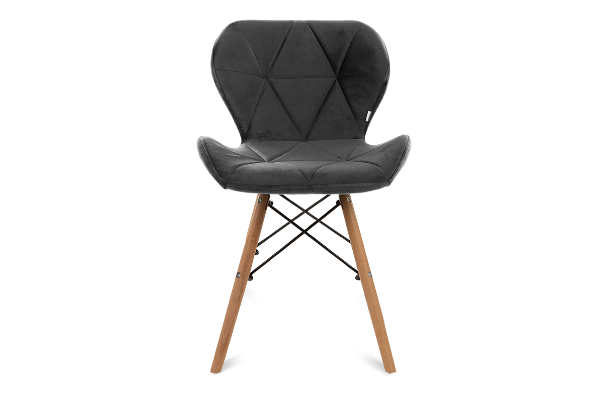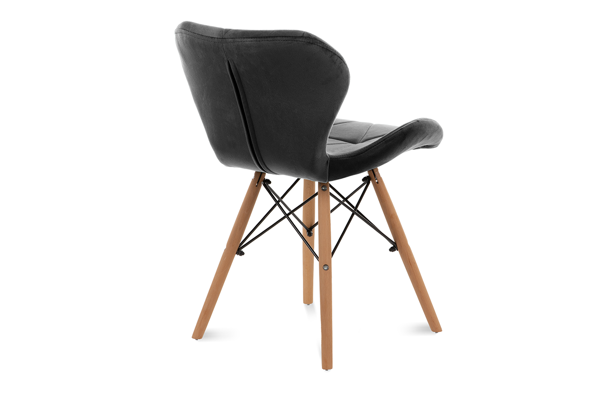 Całości dopełniają designerskie nogi wyróżniające się ciekawym kształtem i oryginalnym połączeniem drewna z metalowymi elementami. Dodatkowo nogi krzesła wykonane są z wysokiej jakości drzewa bukowego, są stabilne i zapewniają bezpieczeństwo użytkowania. Krzesło dostępne jest w wielu wersjach kolorystycznych.