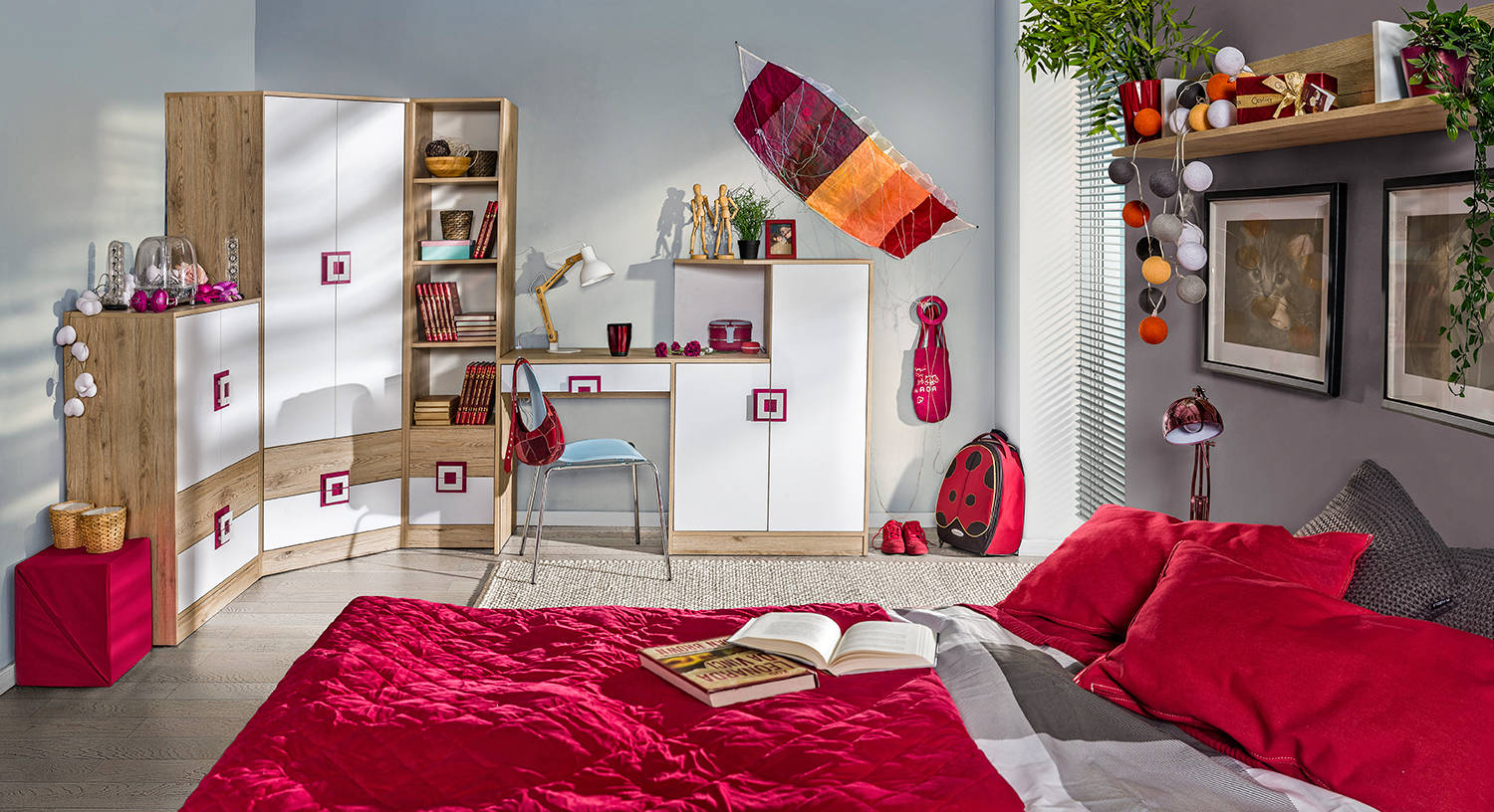CAMBI zobacz całą kolekcję Biurko - kolor biały/jasny dąb/różowy