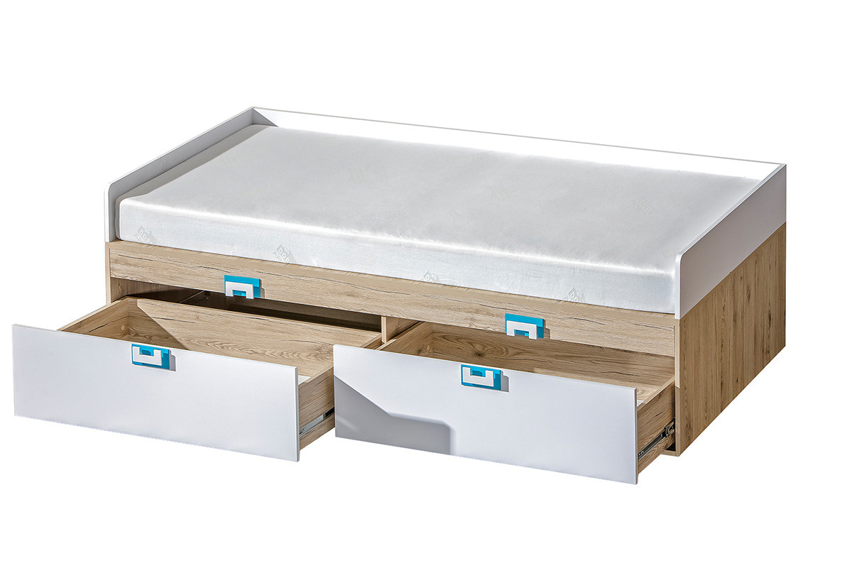 CAMBI zobacz całą kolekcję Łóżko ze stelażem - kolor biały/jasny dąb/turkusowy