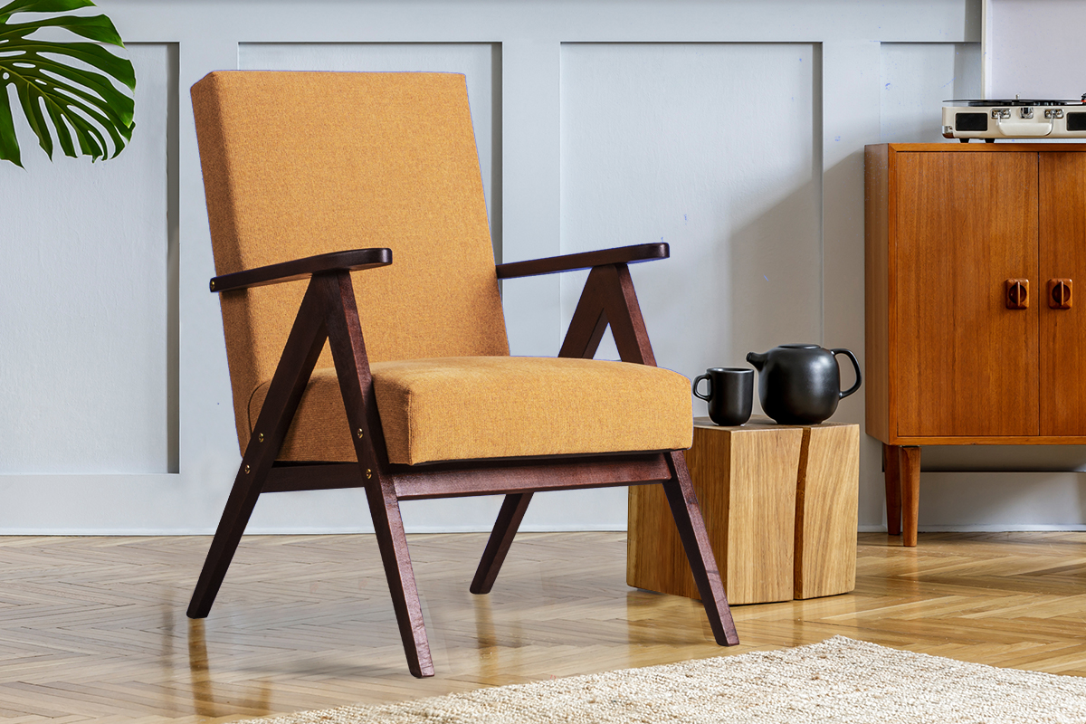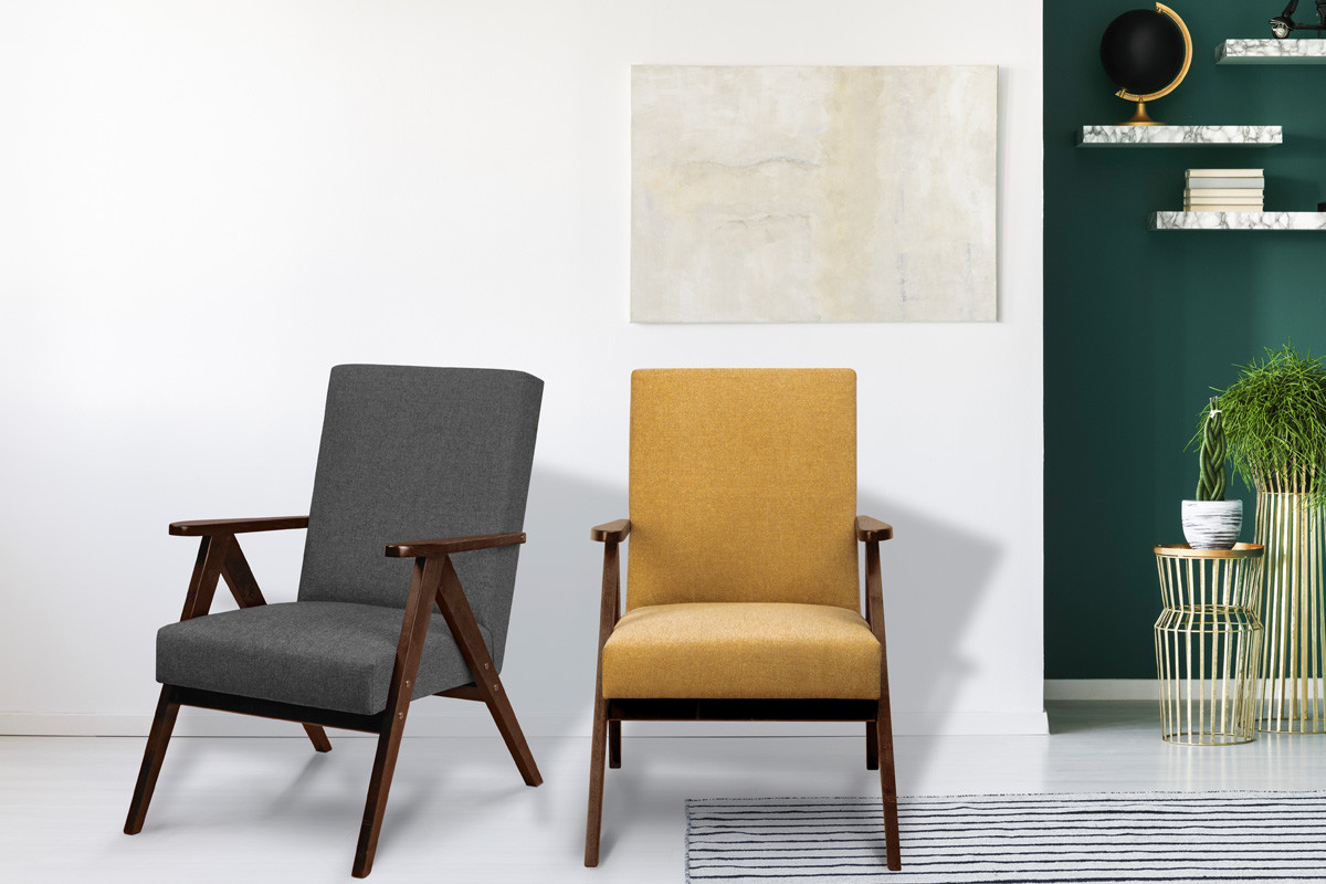 NASET zobacz całą kolekcję Fotel - kolor żółty/ciemny orzech