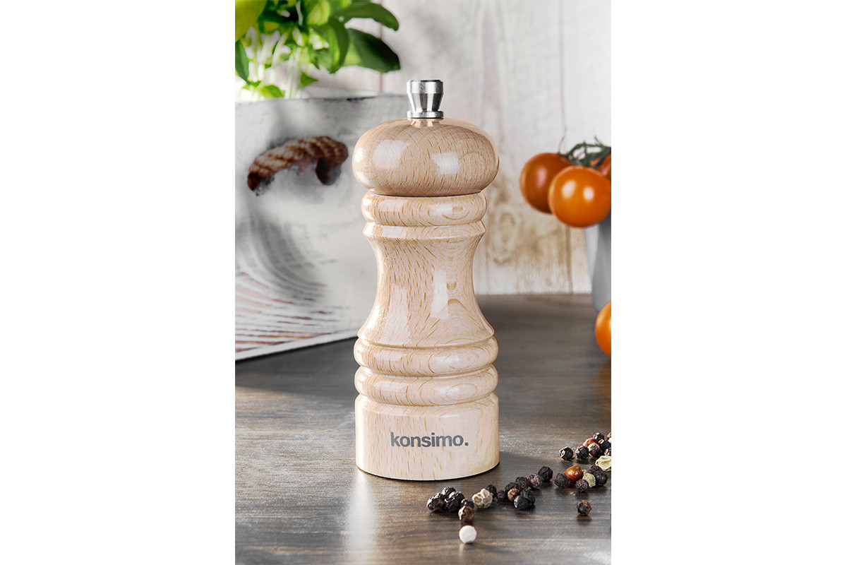 • Dodatkowe informacje: Drewniany młynek jest szczelny, ale niehermetyczny, dopuszczone powietrze podkreśla walory przypraw, Uwaga! Młynków z solą nie należy zostawiać na wilgotnych powierzchniach – sól może wchłonąć wilgoć, która dostanie się do wnętrza młynka