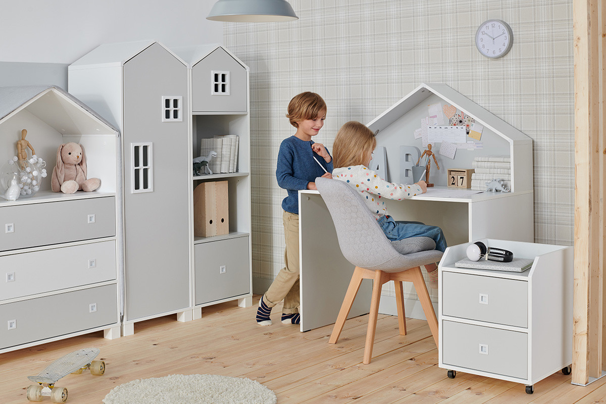 MIRUM zobacz całą kolekcję Biurko domek dla chłopca szare - kolor biały/szary