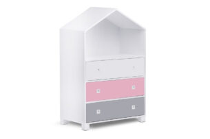 MIRUM, https://dev1-mda.konsimo.pl/kolekcja/mirum/ Zestaw meble domki dla dziewczynki różowe 3 elementy biały/różowy/szary - zdjęcie