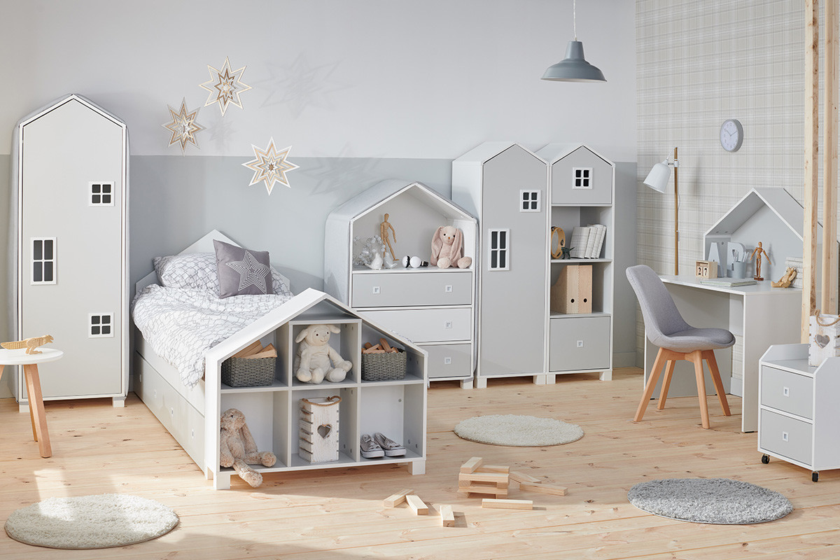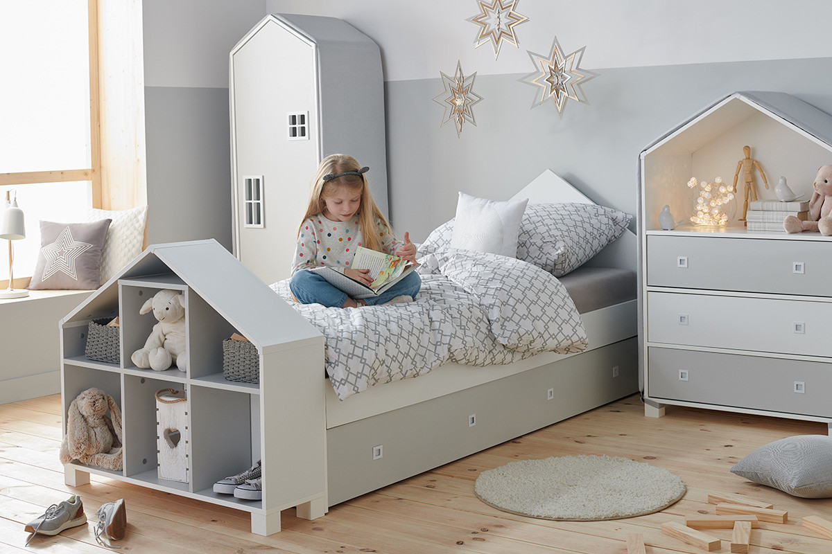 MIRUM zobacz całą kolekcję Łóżko domek szary - kolor biały/szary