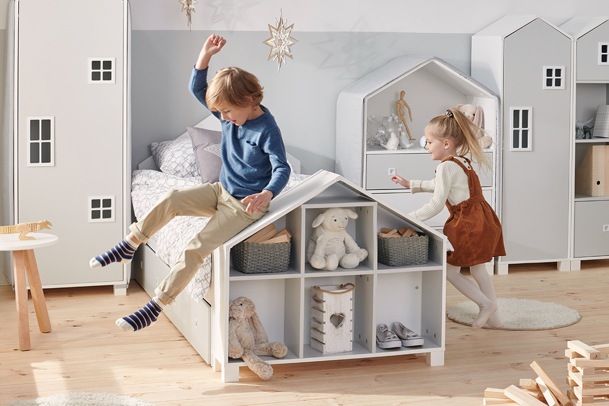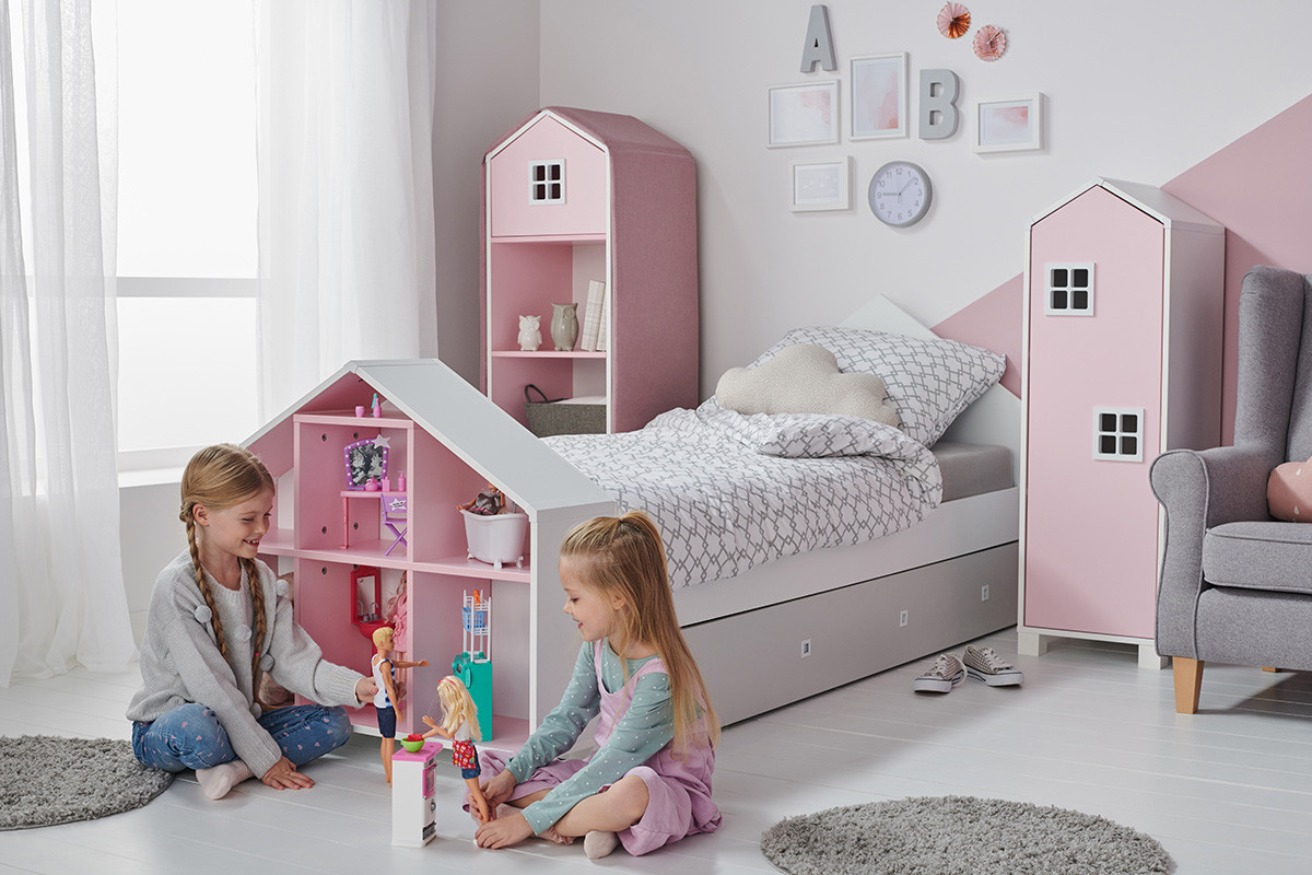 Projektanci mebli-domków dla dzieci zadbali o wszystkie potrzeby najmłodszych. Przede wszystkim postawili na bezpieczeństwo. Łóżko dziecięce z zagłówkami w formie daszków wykonane zostało z solidnej, specjalnie wzmocnionej płyty. Dzięki temu jest doskonale bezpieczne nie tylko podczas odpoczynku, ale nawet w czasie intensywnej zabawy, z bieganiem i skakaniem włącznie. Zamiast twardych zagłówków z ostrymi krawędziami, mamy tu wysoki daszek.