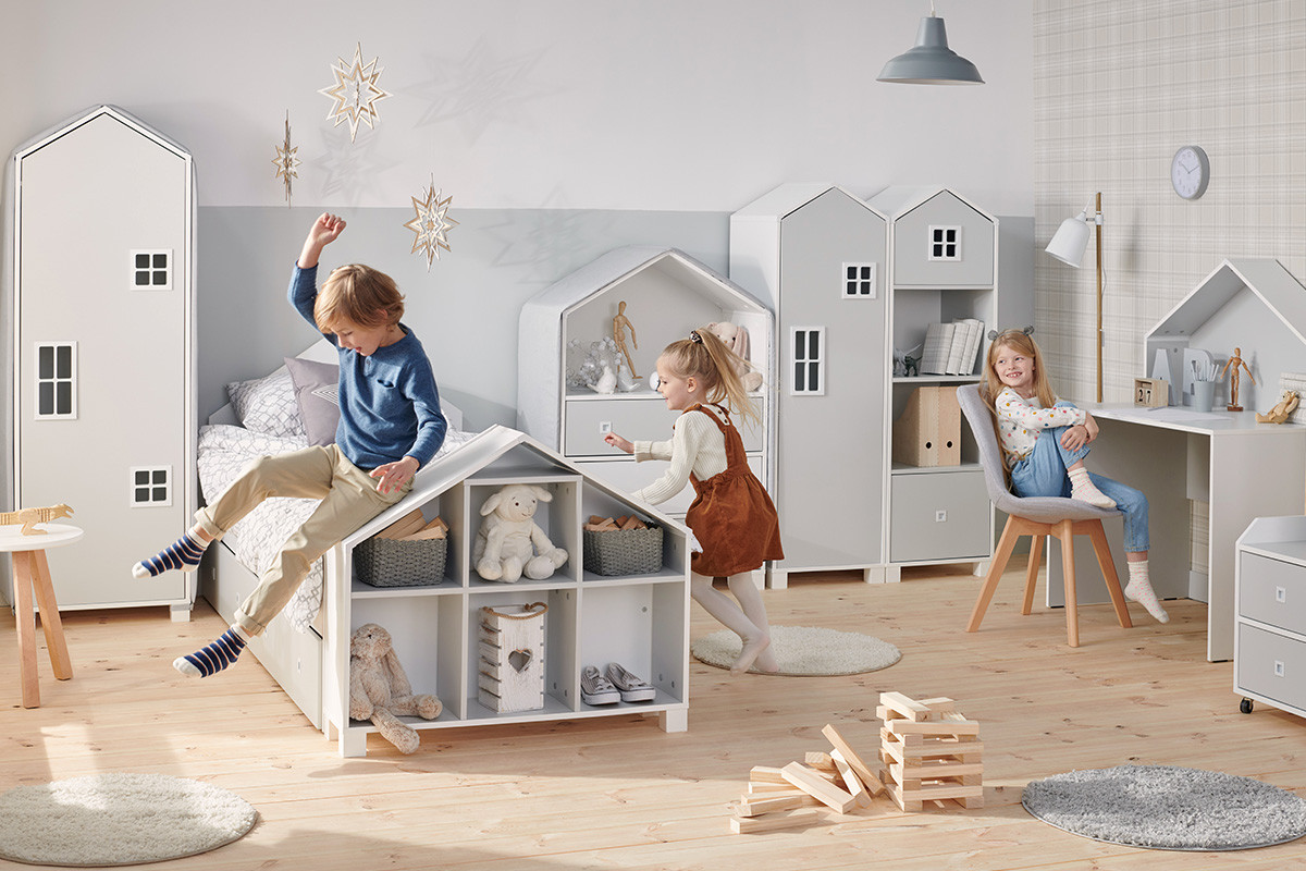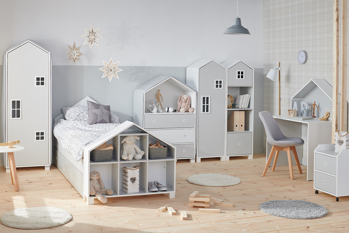 MIRUM zobacz całą kolekcję Regał domek dla chłopca szary - kolor biały/szary