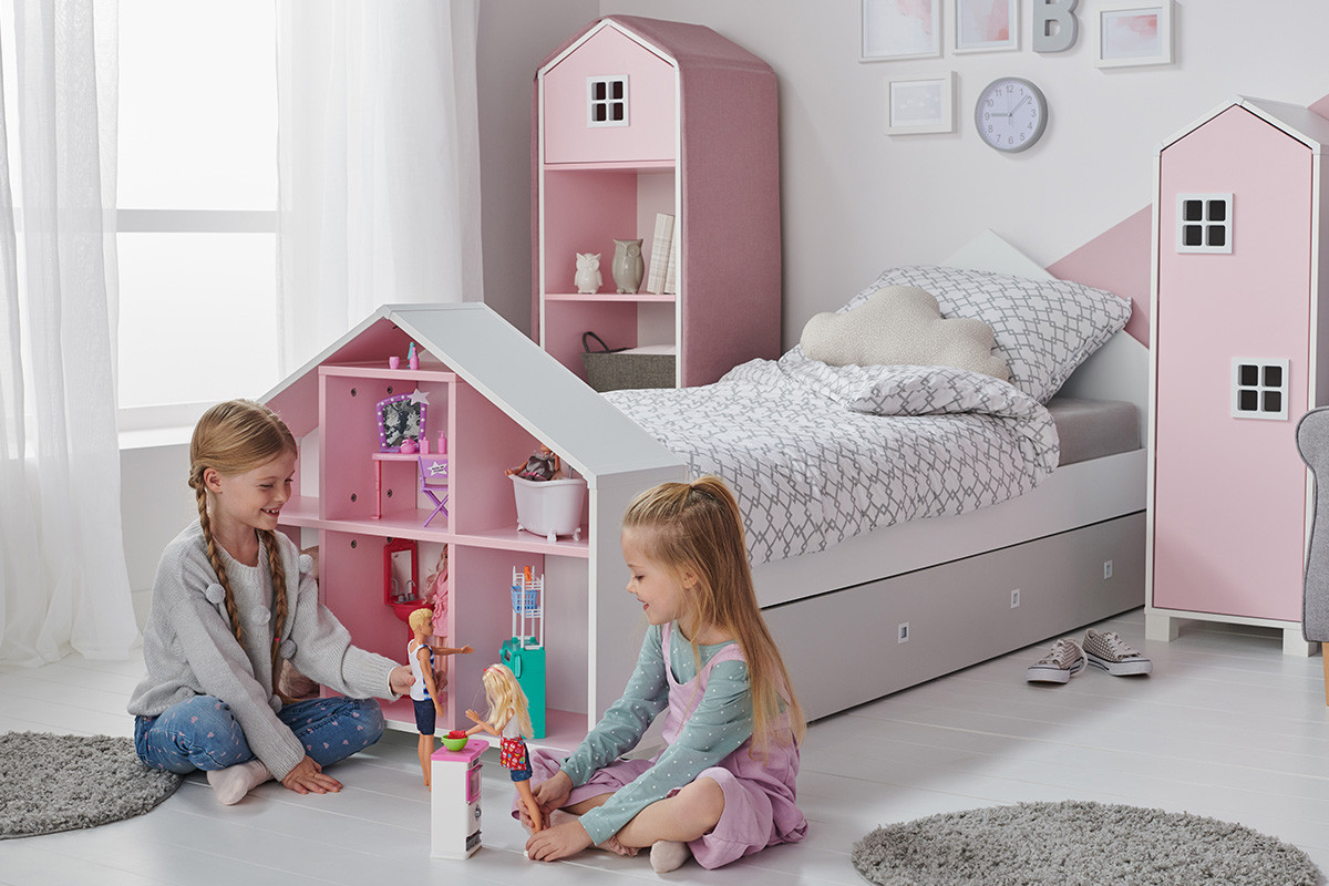 Zamieszkają w nim pluszaki, książki, a może pufy lub pojemniki na zabawki? Domek dla lalek MIRUM to funkcjonalny regał z solidnymi półkami – doskonały sposób na przechowanie dziecięcych drobiazgów. Dostępny w dwóch uroczych, pastelowych kolorach – różowym i miętowym – pięknie udekoruje przestrzeń. Wraz z innymi meblami-domkami z tej kolekcji tworzy bajkową uliczkę domków. Kształt meblowego domku dla lalek idealnie pasuje np. do zagłówka łóżka MIRUM. Dzięki takiej kompozycji przestrzeń dziecięcego pokoiku zostaje optymalnie wykorzystana. To idealna propozycja zarówno dla przedszkolaka, jak i dla młodszego ucznia.