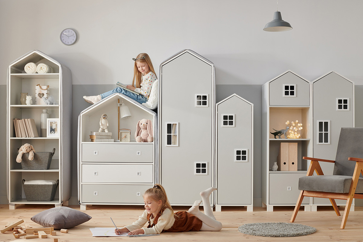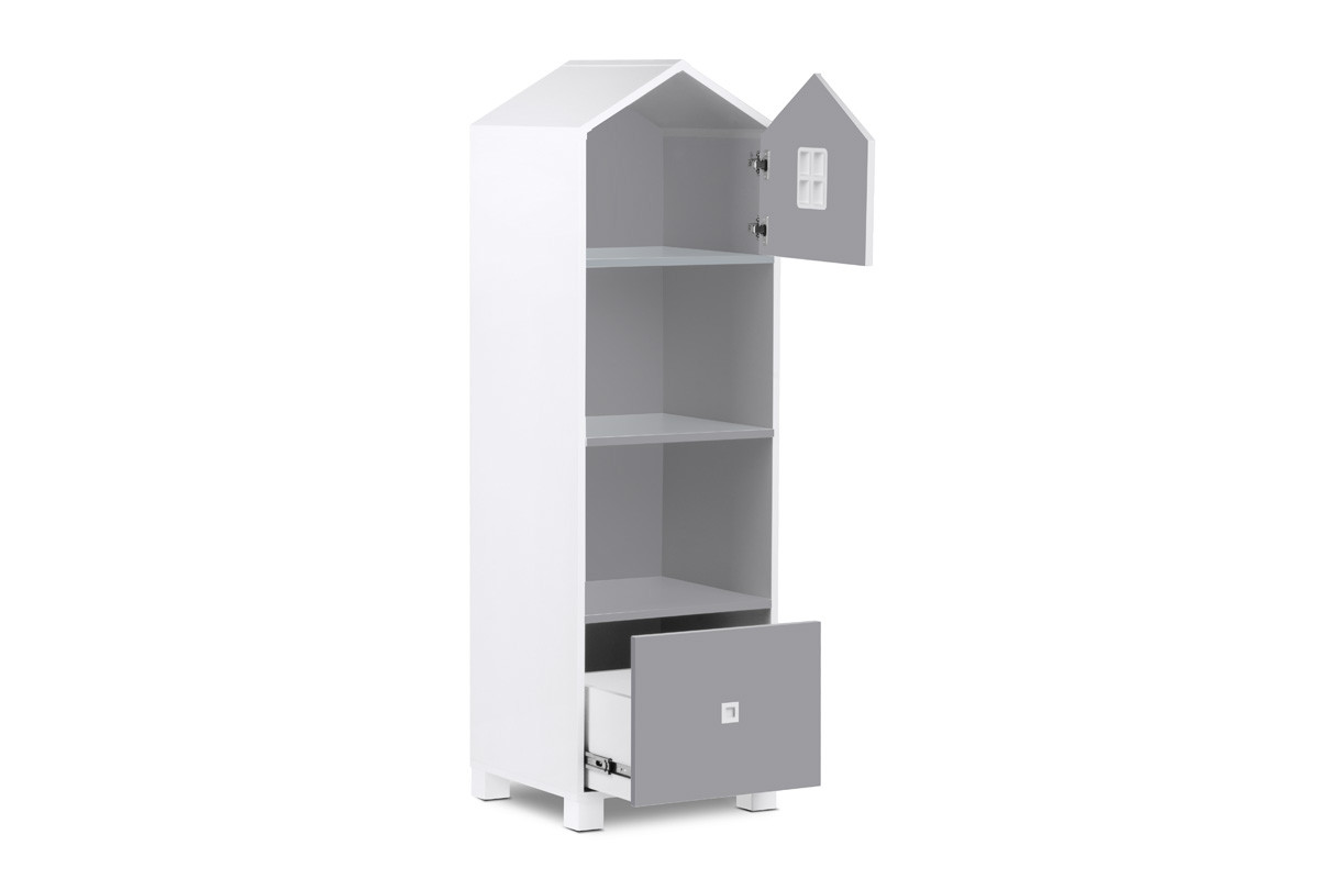 MIRUM zobacz całą kolekcję Regał z szufladą domek dla chłopca szary - kolor biały/szary