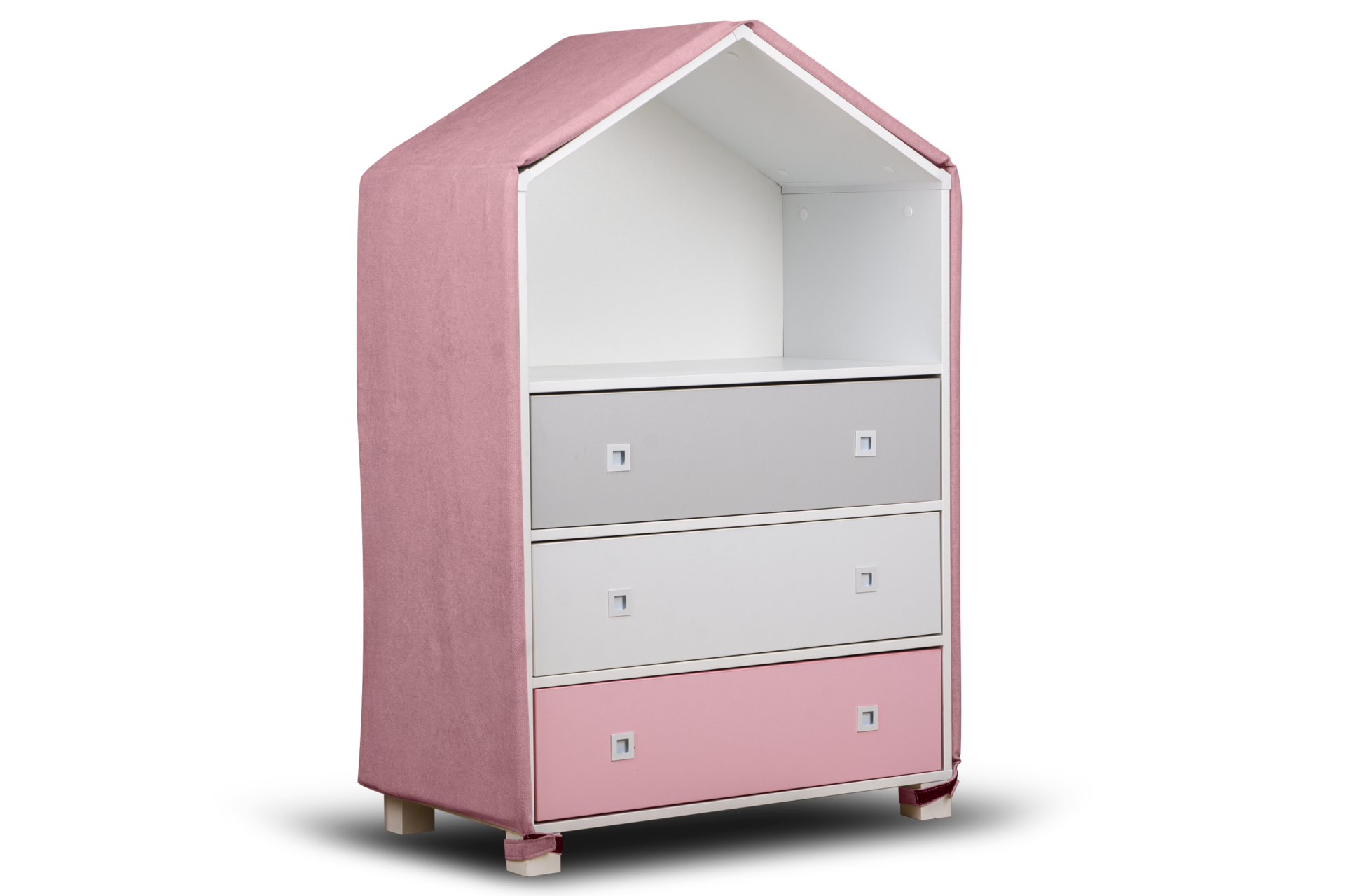 Pokrowiec pasuje do komody szarej, różowej, miętowej i ciemnej miętowej.