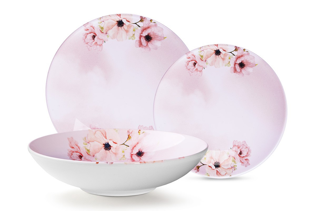 BASIMA zobacz całą kolekcję Zestaw obiadowy, 12 os. (36el.) - kolor różowy/biały