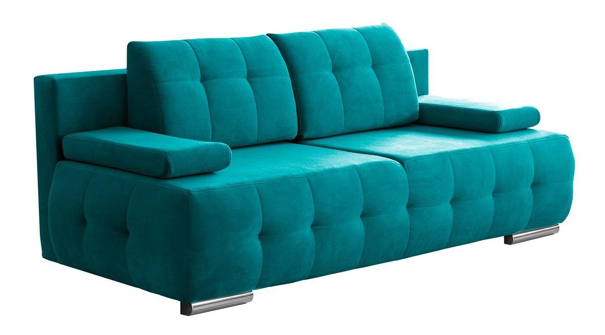 Całość wykonana jest z wysokiej jakości materiałów, takich jak sprężyna falista, pianka wysoko elastyczna, a także tkanina. To wszystko sprawia, że model ten wyróżnia się średnią twardością siedziska, co jest w stanie zagwarantować wygodę podczas użytkowania. Jednak wygoda i doskonały wygląd, to nie wszystko na co można liczyć, decydując się na zakup tego mebla. W jego zestaw wchodzi również skrzynia na pościel, która wykonana jest z wysokiej jakości drewna sosnowego, a także płyty wiórowej. Warto wiedzieć, że są to materiały wytrzymałe na działanie wilgoci i wysokiej temperatury. Dodatkowo nóżki sofy wykonane są z tworzyw sztucznych, a mają one kolor chromu, co doskonale sprawdza się we wnętrzach nowoczesnych i stylowych.