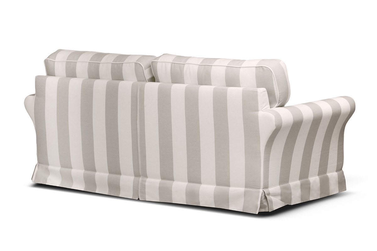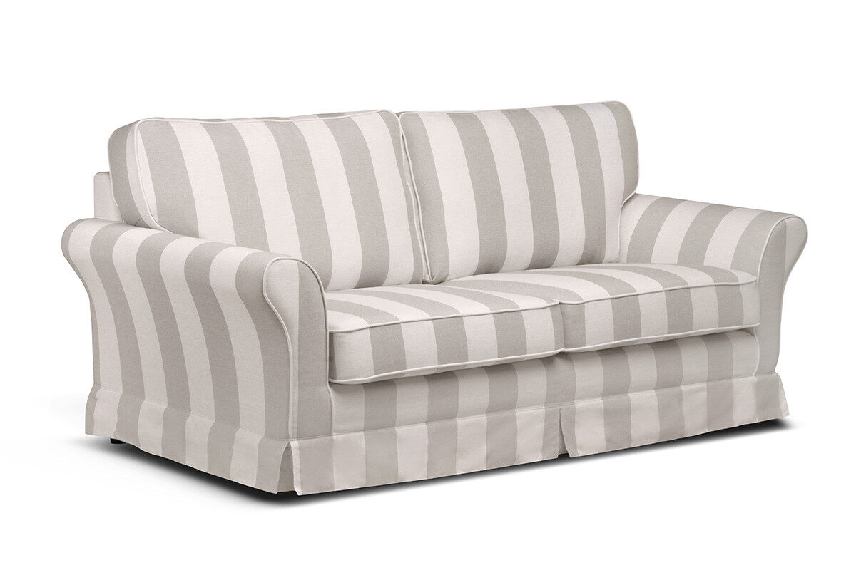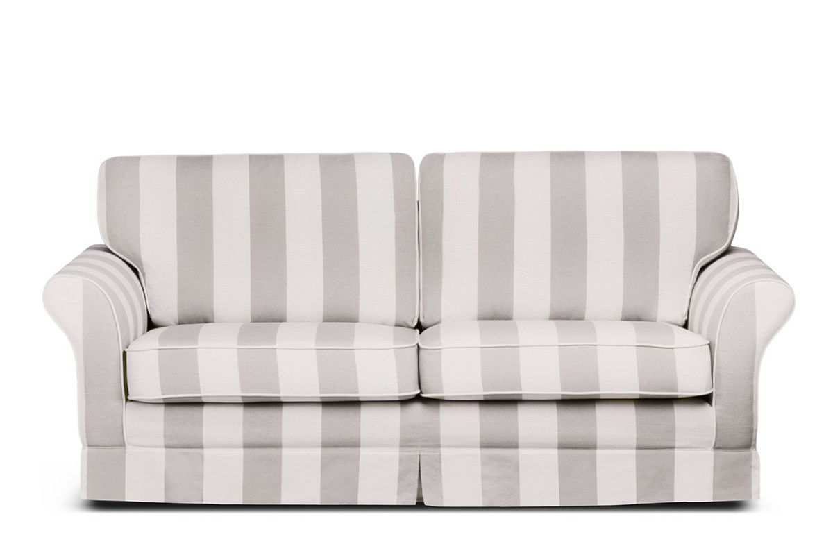 Paski, wbrew pozorom, nie są jedynie elementem wystroju wnętrz o marynistycznym charakterze. Wzór zastosowany w sofie Carla, doskonale wpasuje się zarówno w aranżację o charakterze prowansalskim - np. w połączeniu z zestawem Lemas oraz dopełni salon umeblowany klasyczną kolekcją Frisk. Uniwersalność mebla przejawia się także poprzez wybór klasycznej, prostej formy kanapy oraz doboru biało-beżowej kolorystyki.