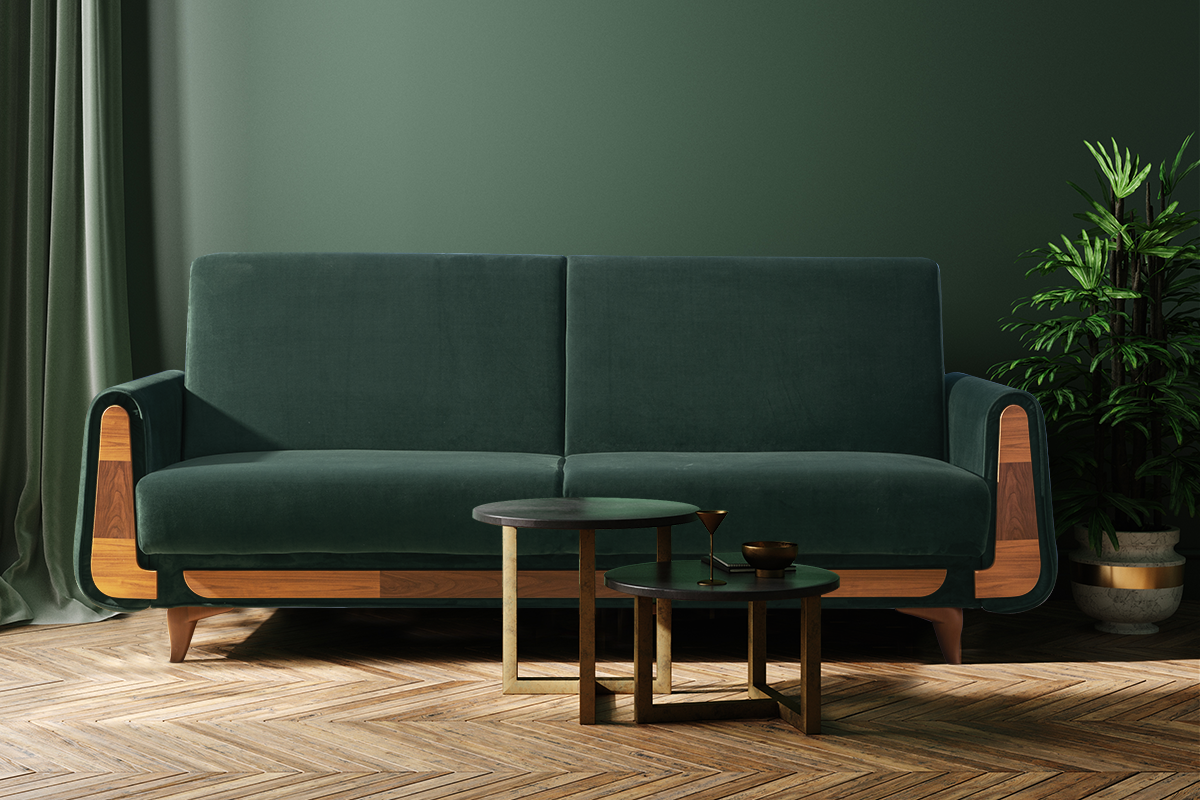 GUSTAVO zobacz całą kolekcję Zielona sofa rozkładana welur - kolor ciemny zielony
