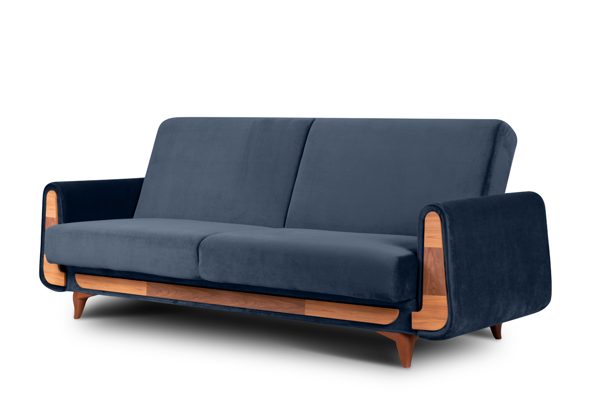 GUSTAVO zobacz całą kolekcję Granatowa sofa rozkładana welur - kolor granatowy
