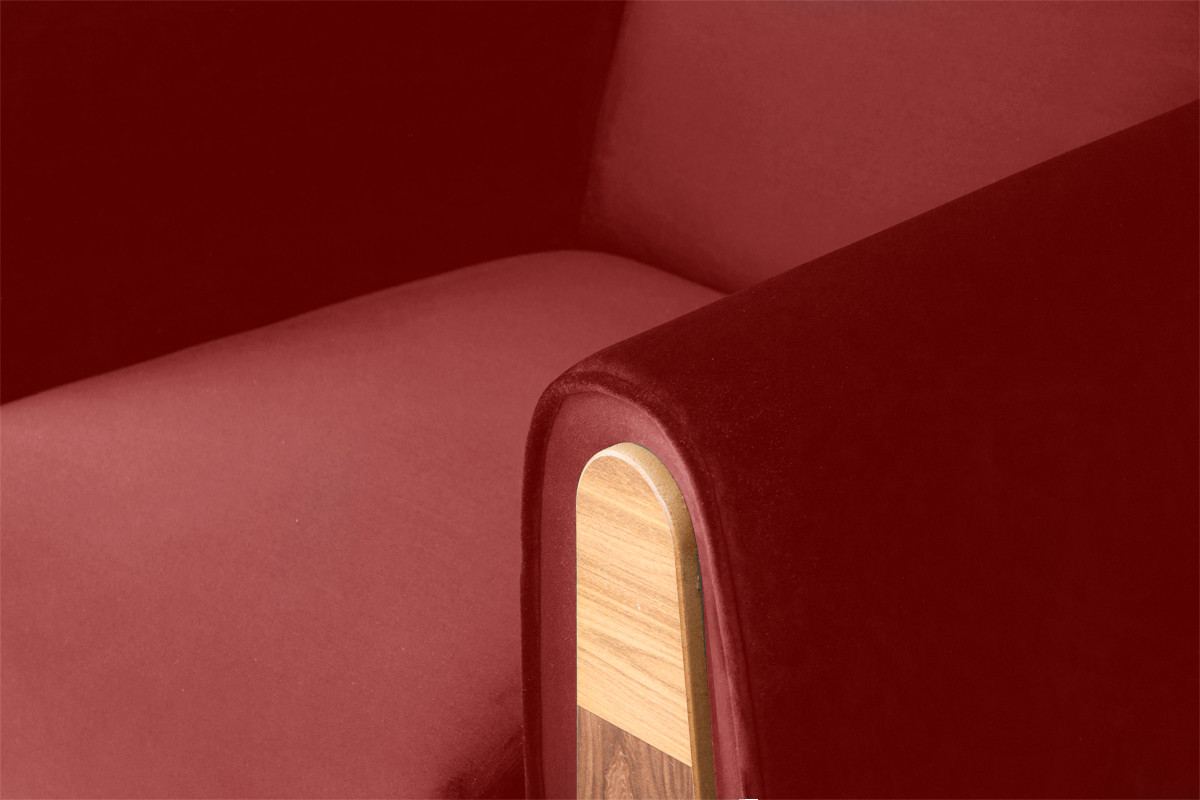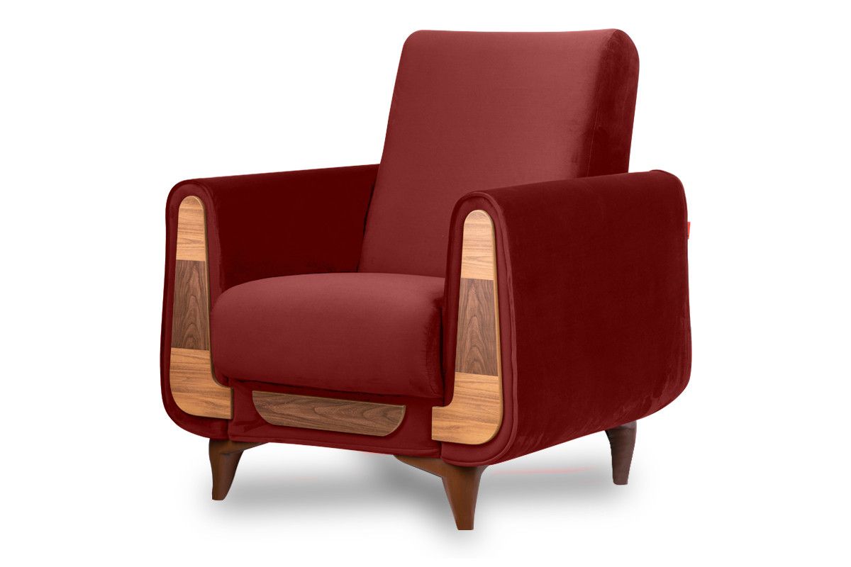 GUSTAVO zobacz całą kolekcję Czerwony fotel do salonu welur - kolor bordowy