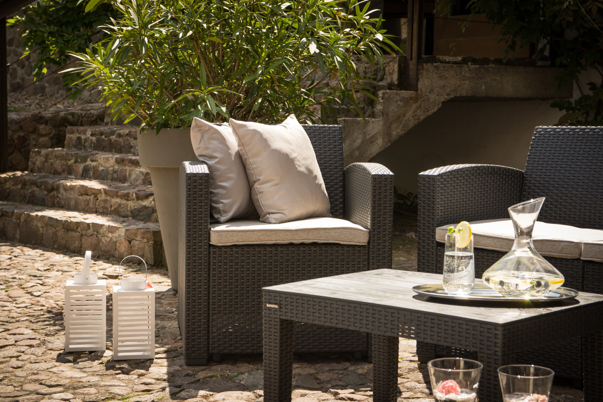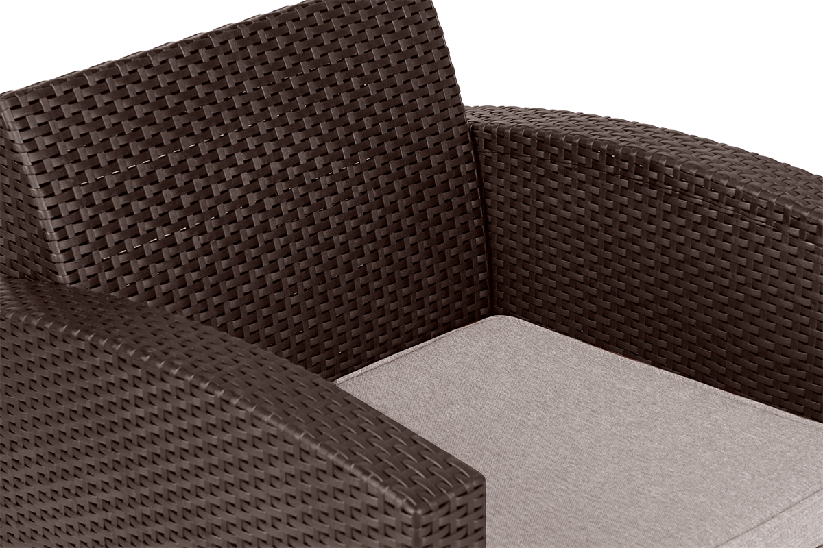 Oryginalny zestaw mebli ogrodowych zachwyca nie tylko swoim wyglądem, ale też specjalnie zaprojektowanym rozwiązaniem – połączeniem wyjątkowo wygodnej poduchy z doskonałą termoregulacją i oddychającą. Szkielet z technorattanu gwarantuje doskonałą odporność na warunki atmosferyczne, a zastosowanie najwyższej jakości mieszanki powoduje, że nasz zestaw jest odporny na promieniowanie UV. Dzięki temu rozwiązaniu meble nie będą się odbarwiać.