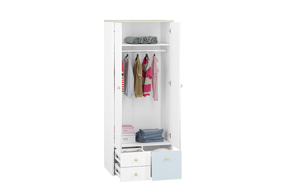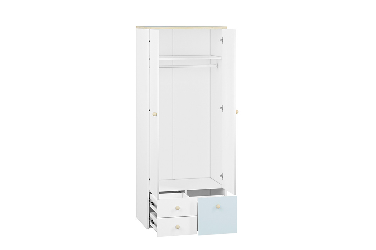 BUBO zobacz całą kolekcję Szafa ubraniowa - kolor biały/drewno bukowe/niebieski