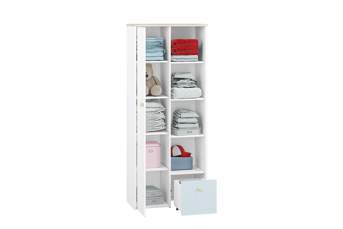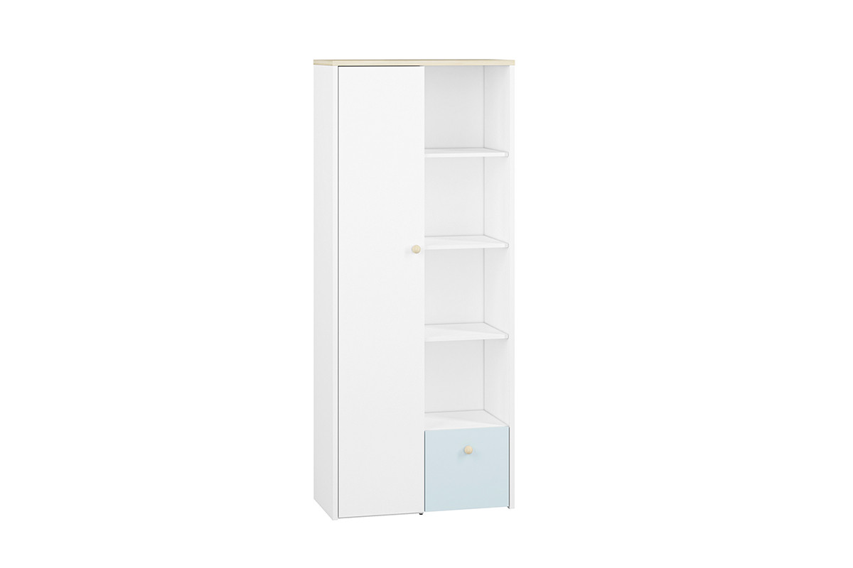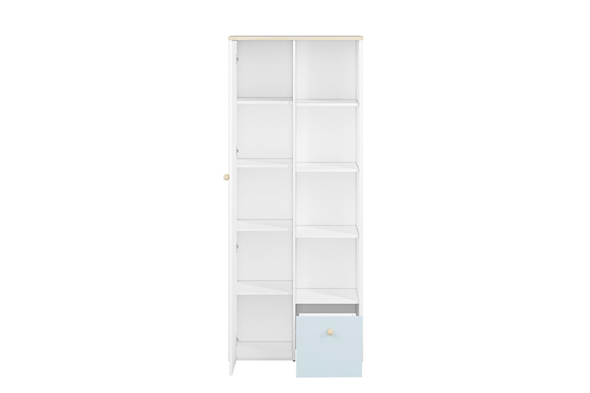 Regał BUBO - kolor biały/drewno bukowe/niebieski