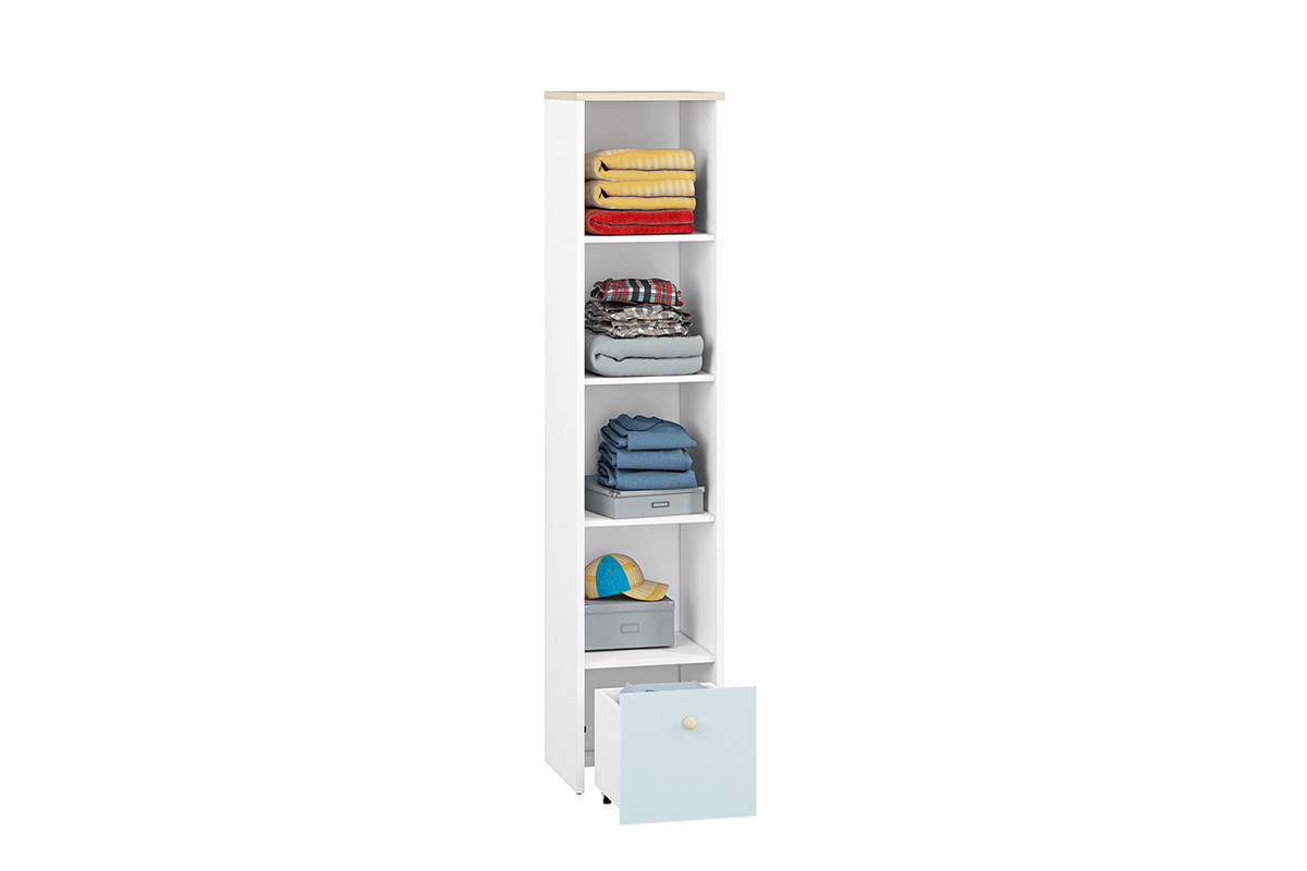 BUBO zobacz całą kolekcję Regał - kolor biały/drewno bukowe/niebieski