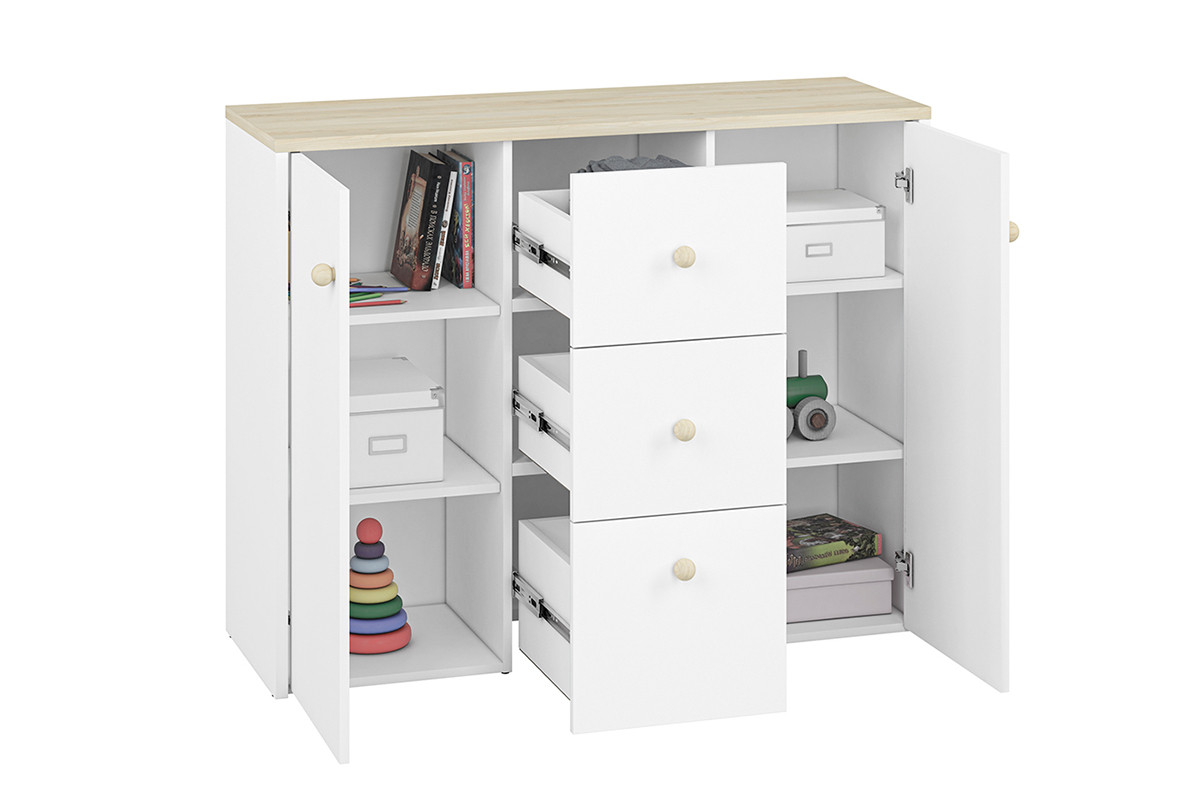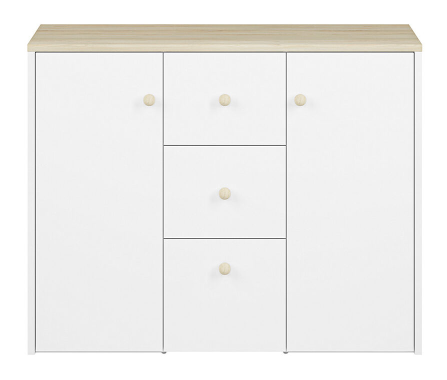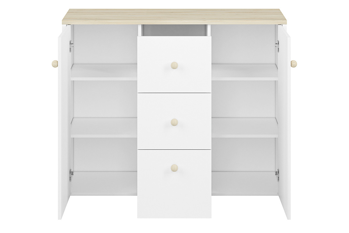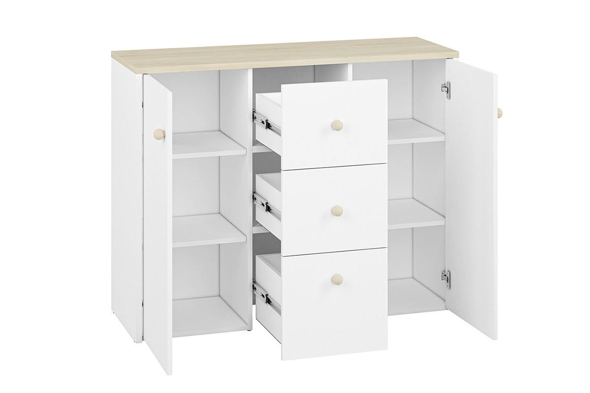 Komoda BUBO - kolor biały/drewno bukowe