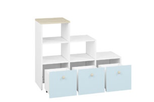 Komody z kolekcji BUBO charakteryzują się dużą uniwersalnością. Dzięki nienachalnej stylistyce będą służyć zarówno tym najmłodszym, jak i trochę starszym dzieciom przez lata. Pełen wysuw szuflad gwarantuje wygodę użytkowania. Tworzywo, z którego wykonane są meble jest bardzo łatwe w utrzymaniu oraz odporne na wszelkie niekorzystne czynniki zewnętrzne, np. zarysowania, o które w pokoju dziecięcym nietrudno.