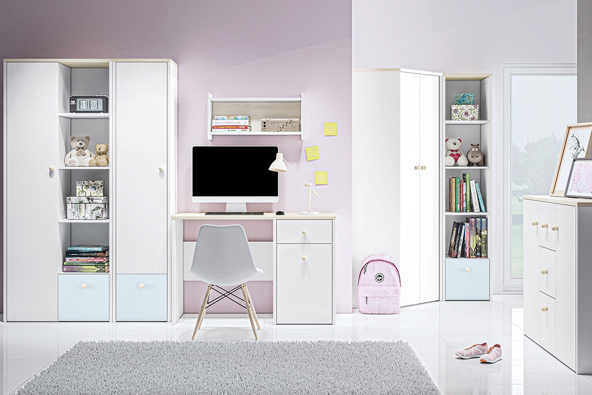 Wybór mebli spełniających wymagania dziecka jest nie lada wyzwaniem. BUBO to kolekcja, dzięki której stworzysz dużą przestrzeń kreatywną, zaspakajając wszystkie potrzeby swoich pociech. Charakteryzuje się ona wariantowością brył. Niezależnie, czy chcesz urządzić mały czy duży pokój, z pewnością znajdziesz coś dla siebie! BUBO jednak to nie tylko funkcjonalność, ale też jakość. Wykonane są bowiem z wytrzymałej płyty laminowanej oraz obrzeży ABS, odpornych na wszelkie oddziaływania zewnętrzne, a przy tym materiał ten jest przyjazny dla środowiska. Zaokrąglone uchwyty z litego drewna dodają meblom bezpieczeństwa. Dostępne w dwóch opcjach kolorystycznych - z różowym bądź niebieskim akcentem - będą cieszyć oko zarówno najmłodszych, jak i dorosłych domowników.