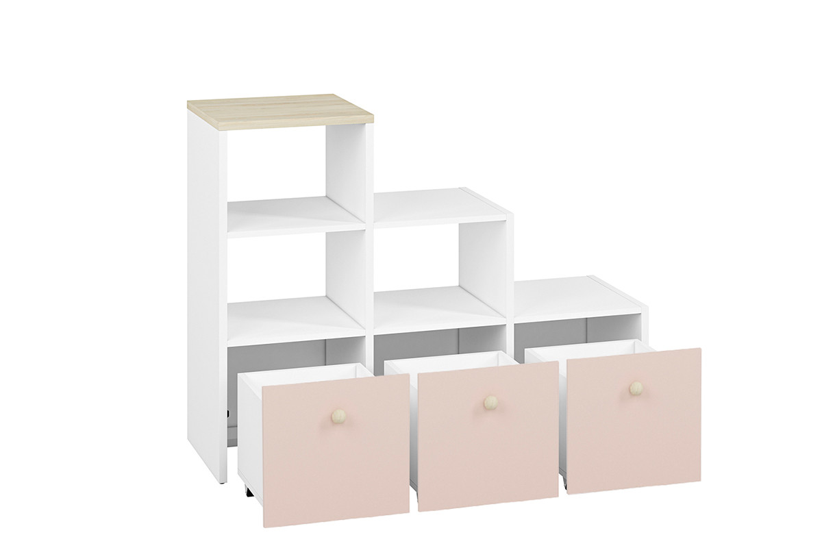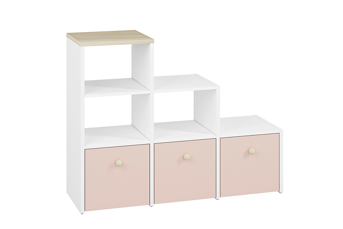 BUBO zobacz całą kolekcję Regał - kolor biały/drewno bukowe/różowy
