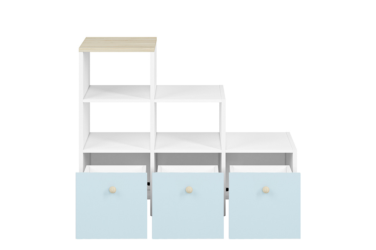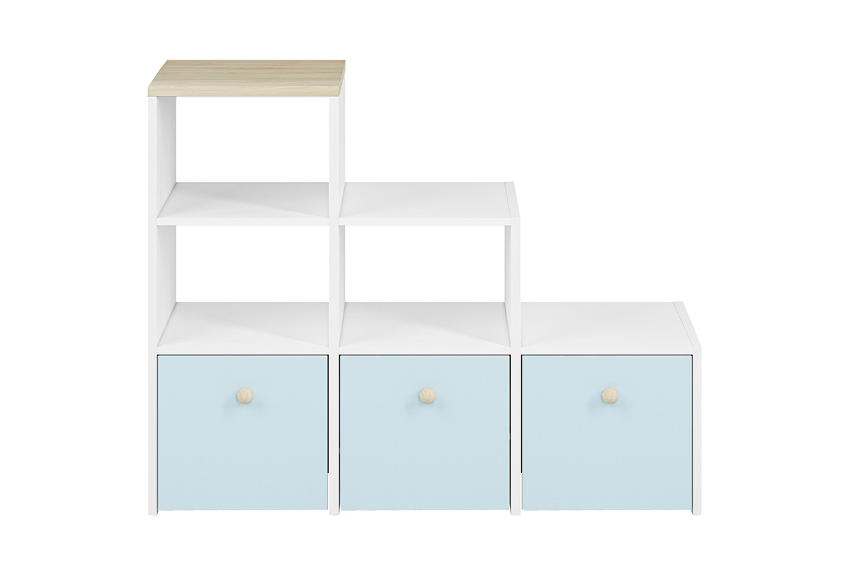 Regał BUBO - kolor biały/drewno bukowe/niebieski