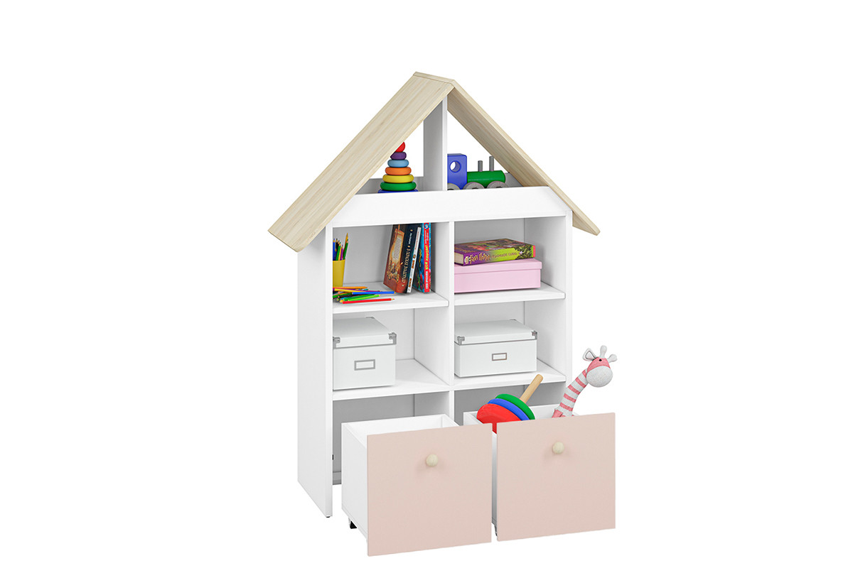 BUBO zobacz całą kolekcję Regał - kolor biały/drewno bukowe/różowy