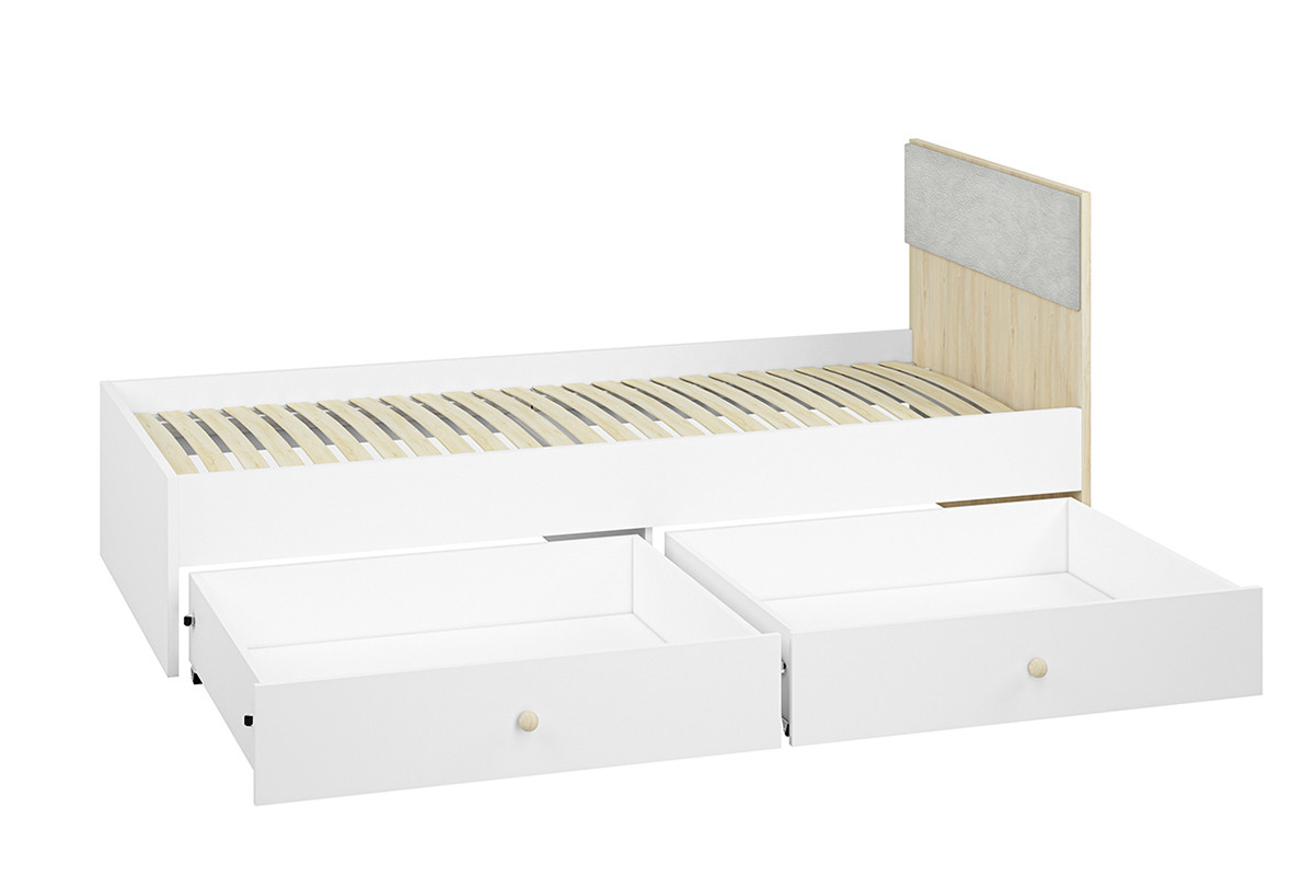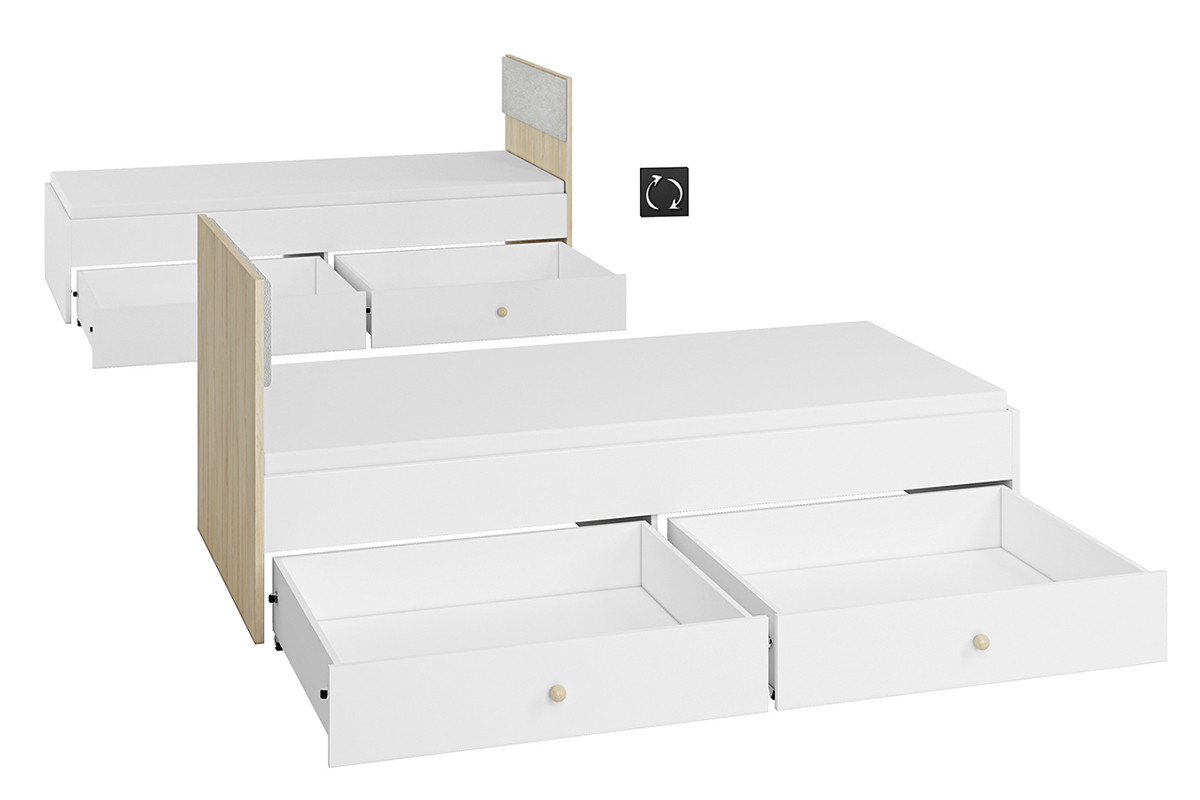 BUBO zobacz całą kolekcję Łóżko ze stelażem - kolor biały/drewno bukowe