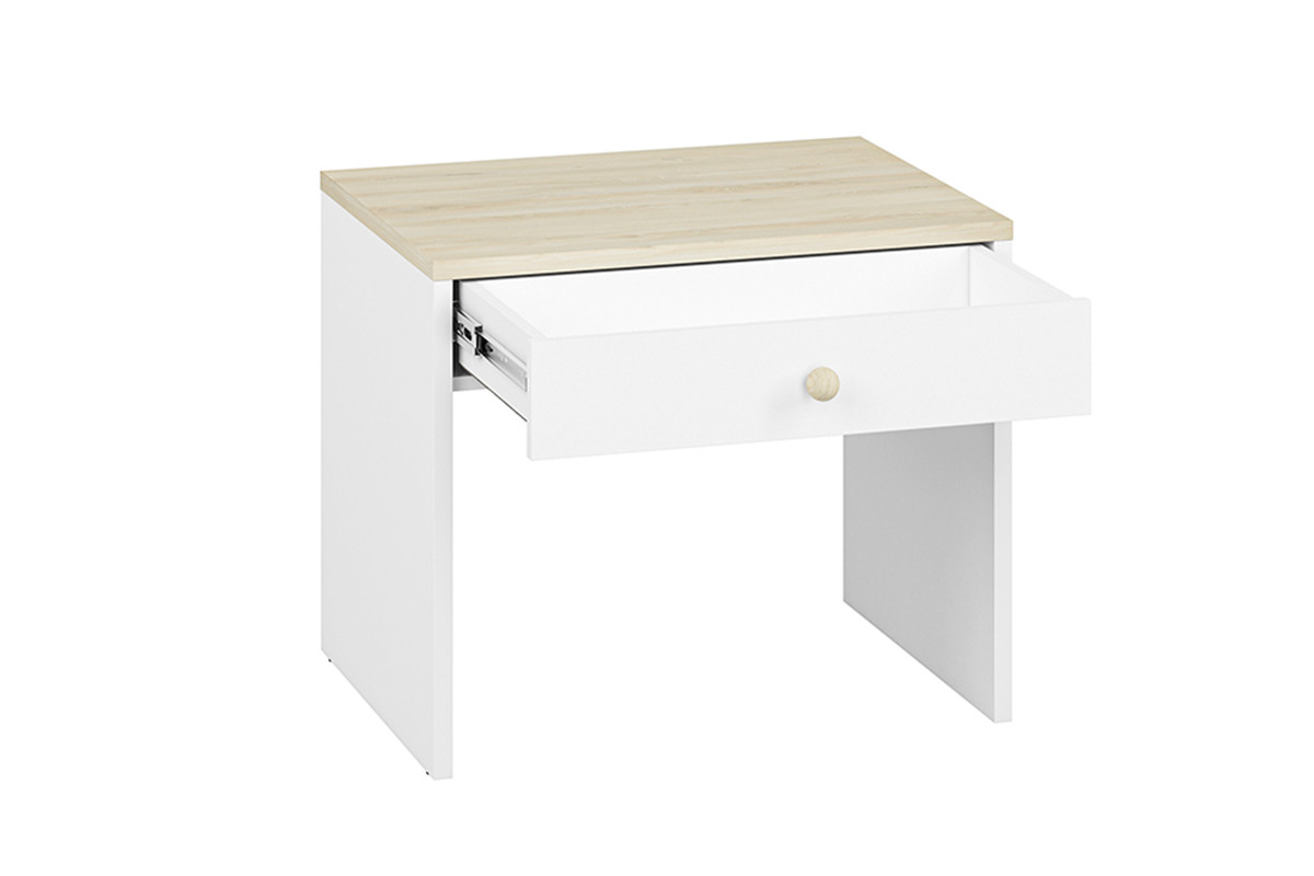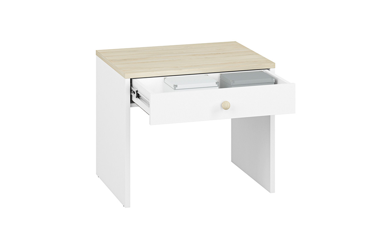BUBO zobacz całą kolekcję Stolik - kolor biały/drewno bukowe