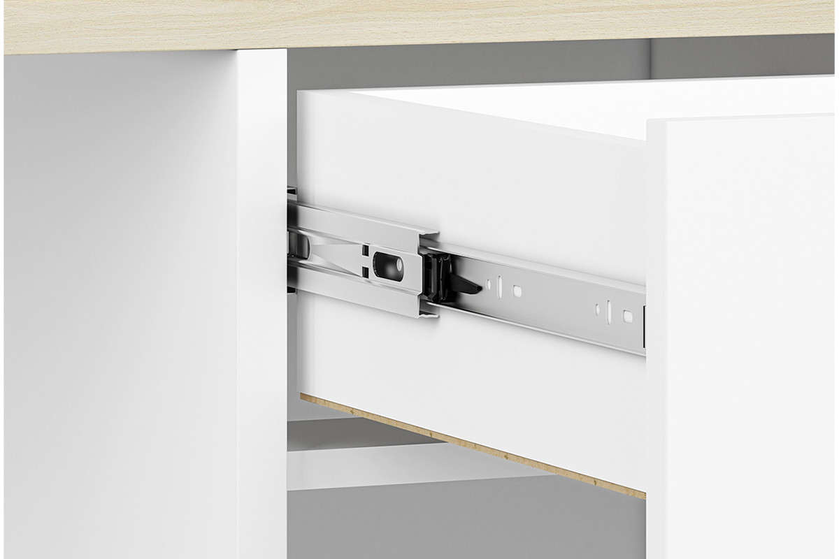 - Prowadnice: Kulkowe z pełnym wysuwem