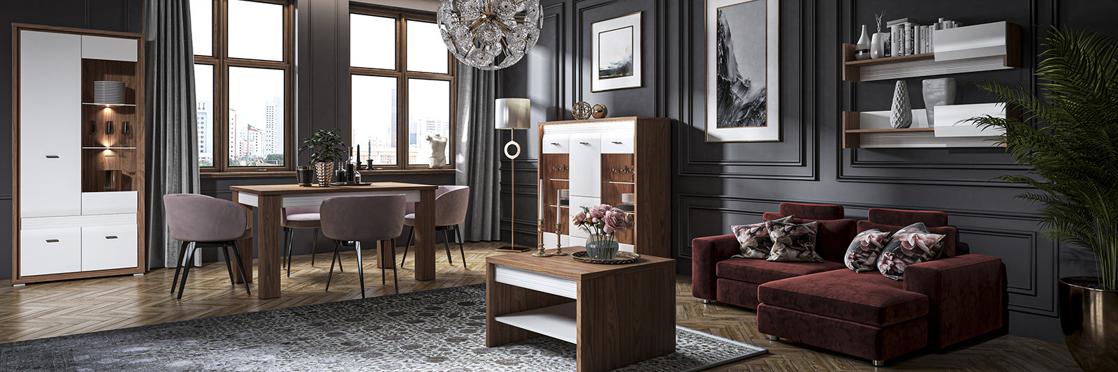 W meblach zastosowano obrzeża ABS, które nie tylko odporne są na niekorzystne czynniki zewnętrzne, ale również są przyjazne dla środowiska. Meble wyposażone są w chromowane uchwyty oraz nóżki, co nadaje im ekskluzywnego wyglądu. Kolekcja ta zwraca uwagę ciekawym kontrastem frontów w białym połysku i korpusu w kolorze naturalnego orzecha. SULA to meble stworzone z wysokiej jakości materiałów, z pewnością wzbogacą Wasze wnętrza. Łączą w sobie wytrzymałość i estetyczny wygląd.