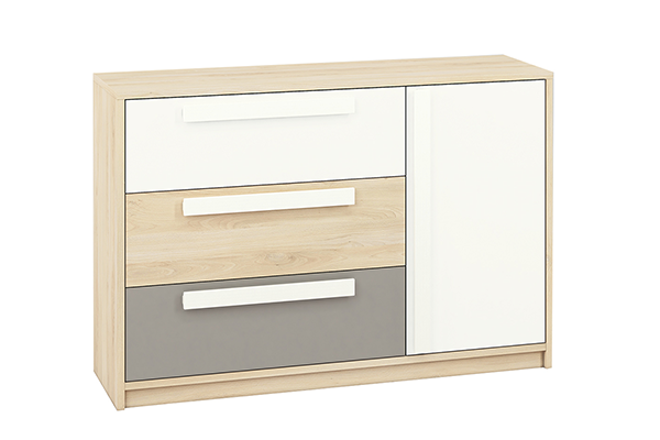 PONGO zobacz całą kolekcję Komoda - kolor buk/biały/ciemny szary