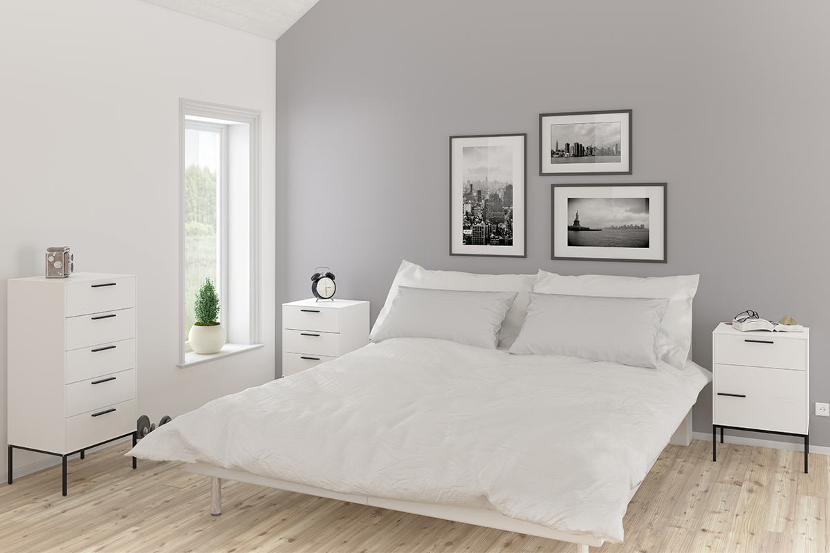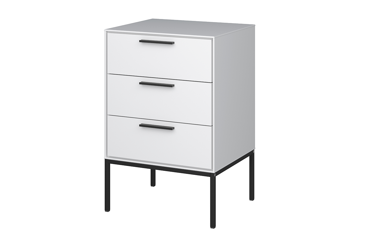 Komody i stoliki nocne z kolekcji SLIMLINE są wykonane z wysokiej jakości materiałów, twarda, gładko wyszlifowana stal i trwała płyta meblowa, jakie zostały wykorzystane do ich produkcji, gwarantują, że meble będą dobrze służyć przez długi czas. Nowoczesne meble są wykończone elementami w ponadczasowej czerni, która doskonale odbija się od białych frontów przyciągając każde spojrzenie.