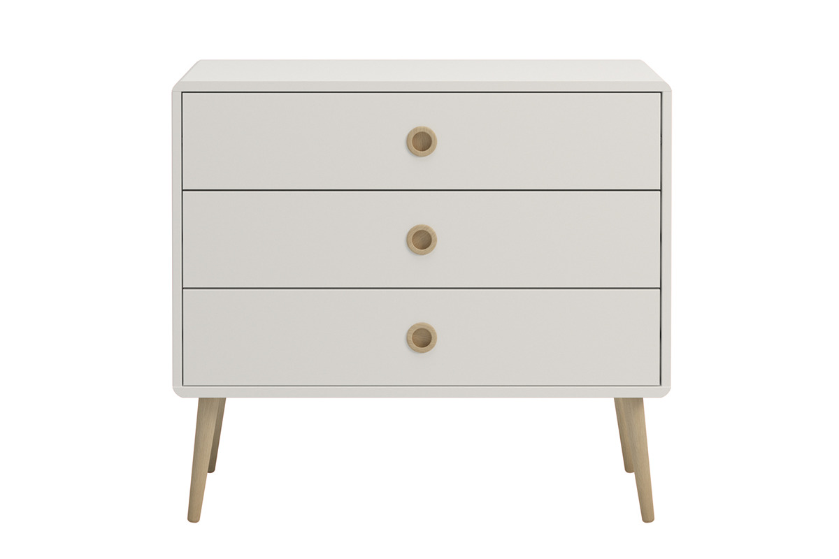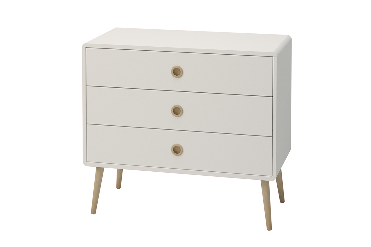 Niska, ale pojemna komoda z 3 szufladami, które pomieszczą kawałek Twojego świata. Ta stylowa komoda dostępna jest w trzech stonowanych kolorach, czarnym, białym i szarym. Każda wersja kolorystyczna jest wykończona elementami, nóżkami i uchwytami z litego drewna dębowego. Ta pojemna komoda w stylu skandynawskim doskonale sprawdzi się w salonie, sypialni, a nawet w łazience, czy przedpokoju.