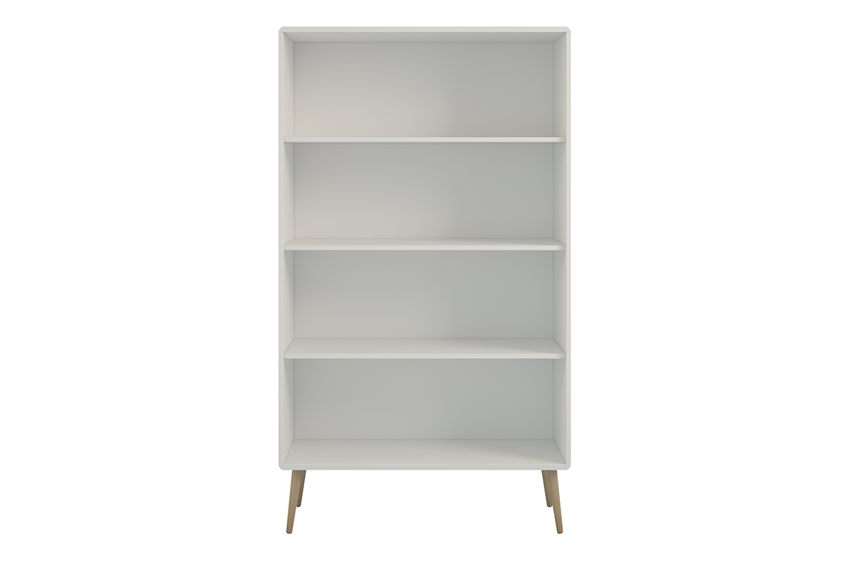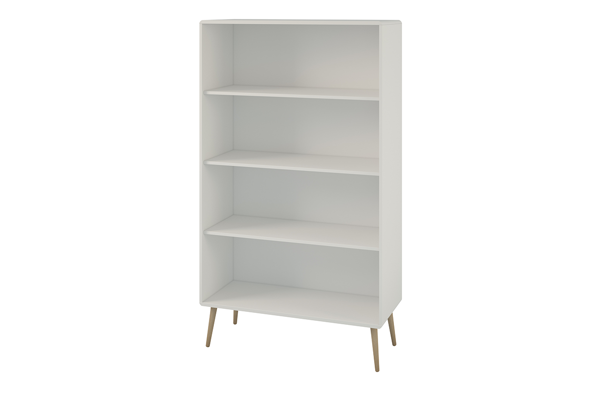 Ten szeroki regał w pięknym białym kolorze z nogami z litego dębu, pięknie wygląda i jest też pojemny, doskonale będzie się czuł w towarzystwie książek, wazonów, ramek ze zdjęciami czy bibelotów. A wszystko to dzięki 4 dużym półkom. Ten skandynawski regał charakteryzuje się też wyjątkowo wysoką jakością i tym samym odpornością na użytkowanie.