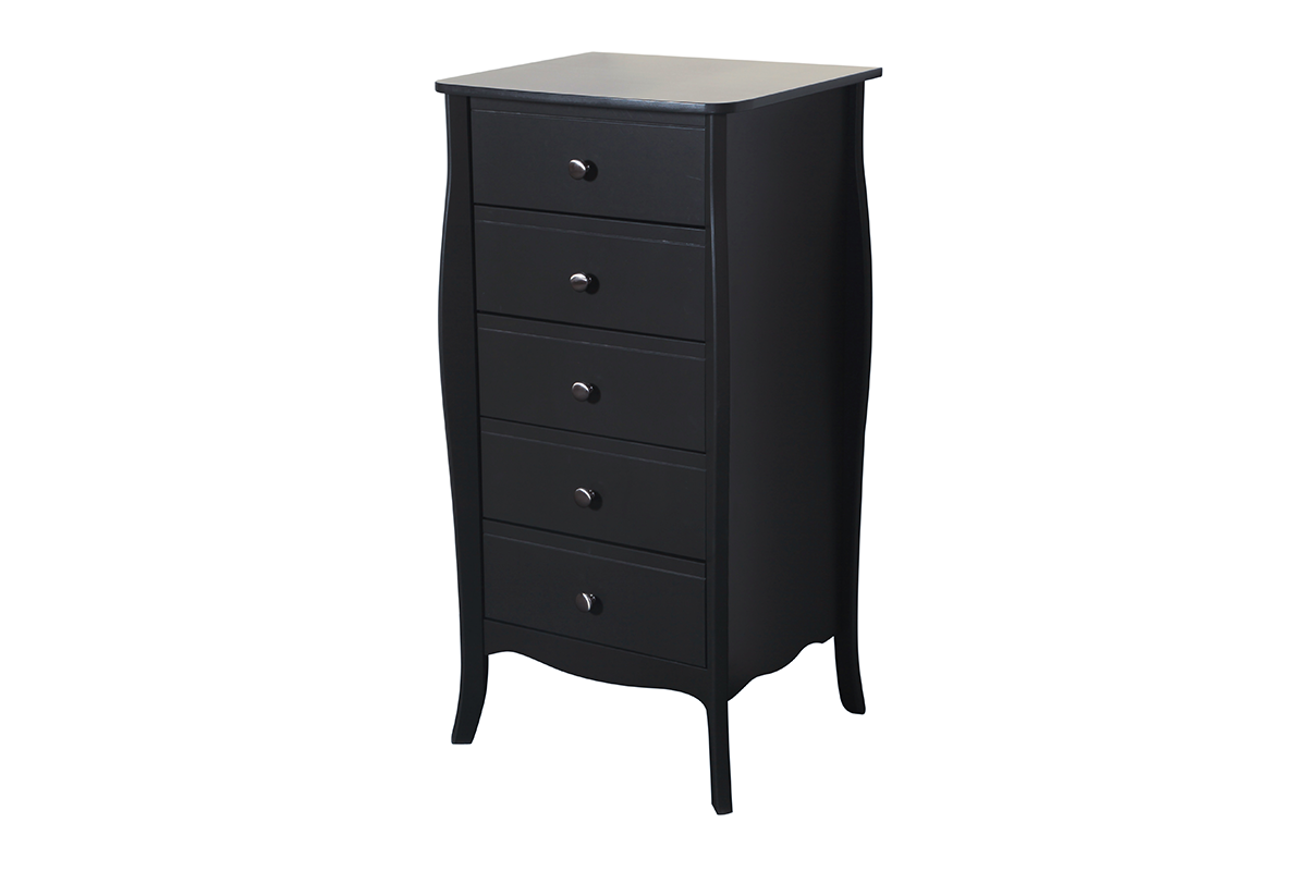 Wysoka, efektowna komoda w stylu barokowym, idealna do salonu, sypialni lub gabinetu. Komoda zajmuje niedużo miejsca, a może pomieścić wiele rzeczy, a to dzięki 5 pojemnym szufladom. Zamontowano w nich dobrej jakości prowadnice, dzięki którym odsuwanie i zasuwanie szuflad jest wygodne i łatwe.Barokowa komoda wykonana została z dobrych i trwałych materiałów, żebyś mógł z niej korzystać latami.