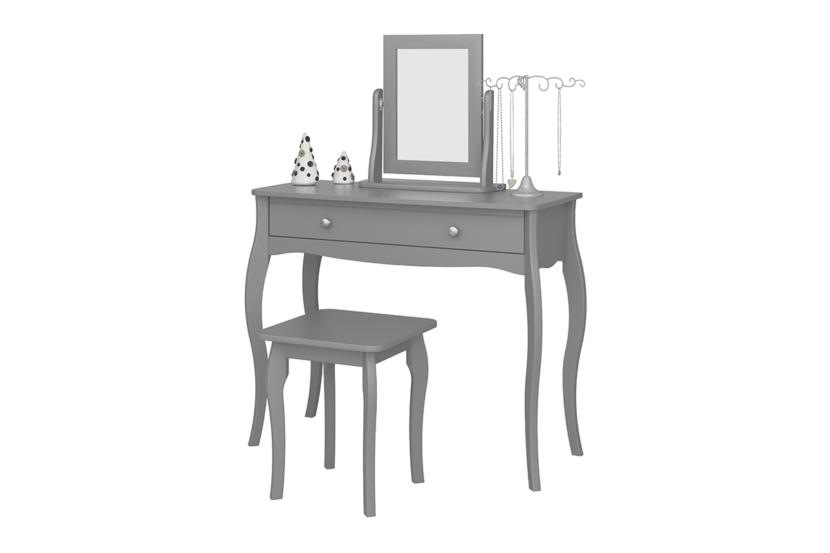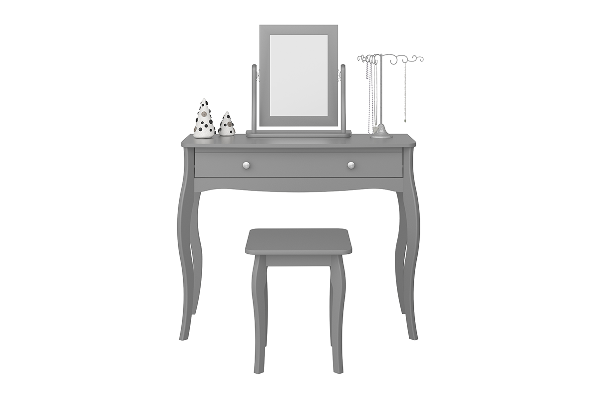 Konsola w barokowym stylu dostępna w 3 kolorach. Piękny mebel idealny na przedpokój, w trzech, klasycznych kolorach do wyboru, eleganckiej czerni, delikatnej bieli oraz zdecydowanej szarości. Ta barokowa konsola ma 2 szufladki do przechowywania, całkiem duży blat oraz subtelnie wygięte nogi.Barokowa konsola została wyprodukowana z dobrej płyty, oklejona wysokiej jakości okleiną, odporną na blaknięcie i ścierani, którą łatwo utrzymasz w czystości.