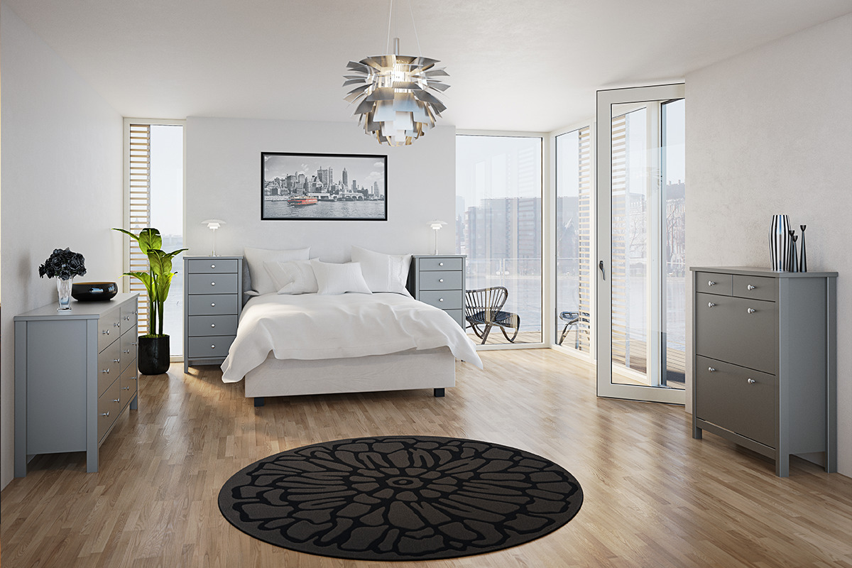Meble dostępne są w trzech uniwersalnych kolorach, idealnych do minimalistycznych i klasycznych mieszkań. Możesz wybrać pomiędzy elegancką czernią, rozjaśniającą bielą i zdecydowaną, zimną szarością. Te proste meble wykonane są z solidnej płyty meblowej, pokrytej ładnie prezentującą się okleiną, która jest odporna na blaknięcie, a jednocześnie łatwo utrzymać ją w czystości. Producent zastosował wysokiej jakości mechanizmy, zawiasy i prowadnice, aby korzystanie z mebli było naprawdę wygodne i łatwe.