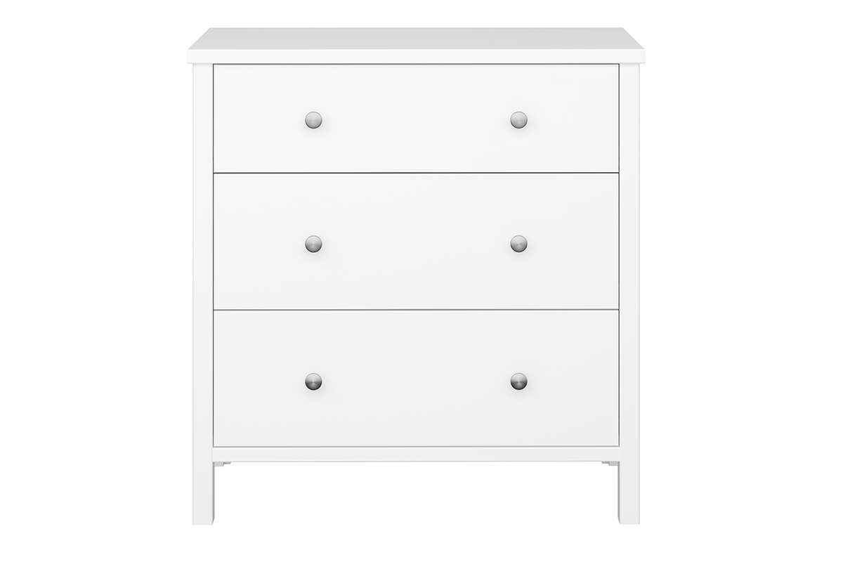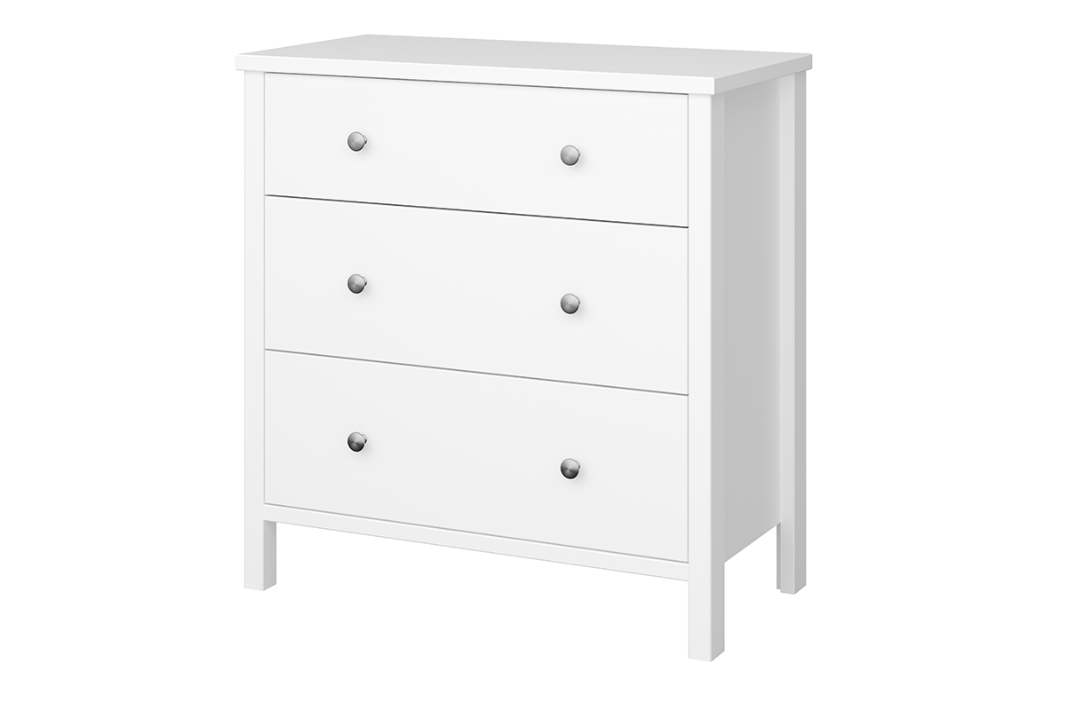 Komoda o niezwykle prostej, geometrycznej formie, z kwadratowymi nogami, wyposażona w 3 pojemne szuflady. Ta niska, a pakowna komoda, jest bardzo praktyczna, bo pomieści w sobie dużo rzeczy i ponadto oczywiście doskonale się prezentuje. Komoda TROMSÖ jest dostępna w 3 pięknych kolorach, szarości, bieli i ponadczasowej czerni. Tradycyjna niska komoda to produkt wysokiej jakości, wykonany z wytrzymałej płyty meblowej, wykończonej elegancką okleiną, odporną na ścieranie i łatwą w czyszczeniu. Szuflady wykończone są eleganckimi i wygodnymi uchwytami z metalu. Komoda wyposażona jest w dobre prowadnice, które będą dobrze działać przez długi czas.