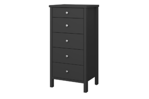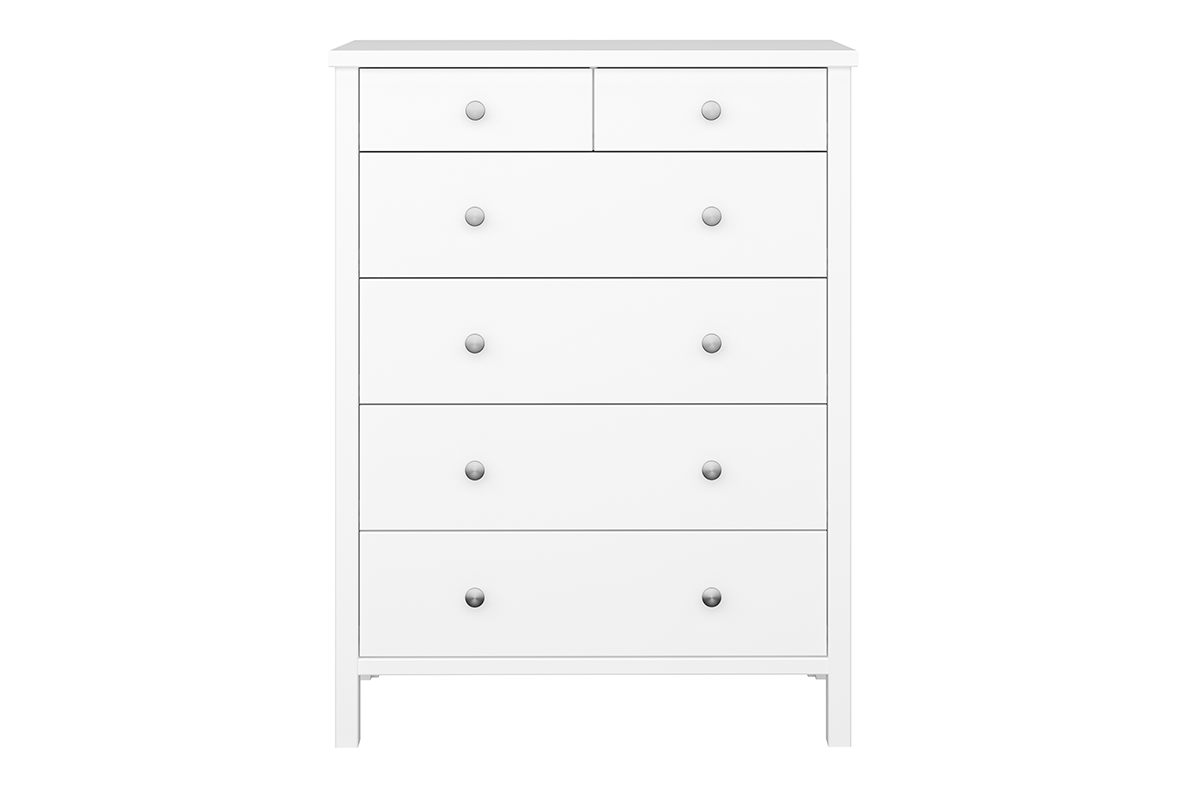 Klasyczna, wysoka komoda z kwadratowymi nogami, cudownym, minimalistycznym designie. Ta pojemna komoda ma aż 6 szuflad, 4 dolne duże i 2 górne mniejsze, czyli wystarczająco dużo by pomieścić jakąś część Twojego życia. Szuflady posuwają się na wysokiej jakości prowadnicach, które gwarantują niezawodne działanie, wykończone są wysokimi uchwytami ze stylowego metalu.Tradycyjna komoda TROMSÖ dostępna jest w 3 klasycznych kolorach, bieli, czerni i szarości.