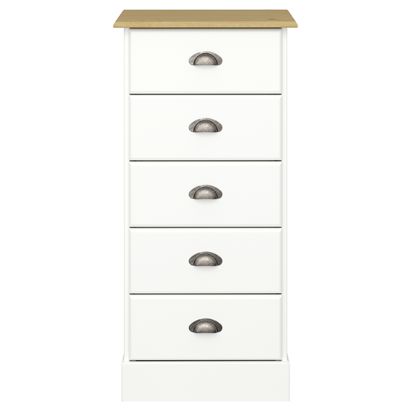 Wysoka komoda NOLA to solidny meble, wyprodukowany z dbałością o każdy szczegół, z użyciem solidnych, sprawdzonych materiałów. Dzięki temu będzie Ci towarzyszył przez wiele lat. Ta wysoka, smukła komoda jest świetnym meblem do salonu, sypialni, garderoby, czy łazienki, 5 pojemnych szuflad zmieści przedmioty potrzebne w każdym domu.