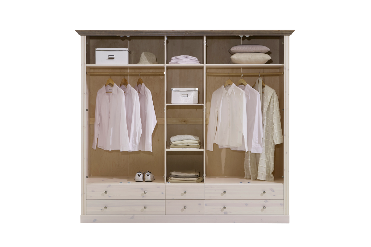 Spora szafa, mieści dużo rzeczy. Super wygląda z wbudowanymi już lustrami. Z czystym sumieniem daję 5 z plusem.