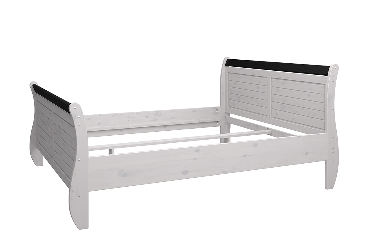 Stylowe łóżko jednoosobowe z pięknie wygiętymi nogami, które nadają mu niezwykłej subtelności. Jest to solidna rama łózka wykonana z dobrej jakości surowców. Łóżko ma kolor biały, a w zależności od wariantu może mieć czarne lub ciemnobrązowe wykończenia w odcieniu wenge. Rama łóżka jest łatwa w czyszczeniu, odporna na ścieranie, co może być istotne, kiedy mieszkają z Wami dzieci, lub sami lubicie brudzić.