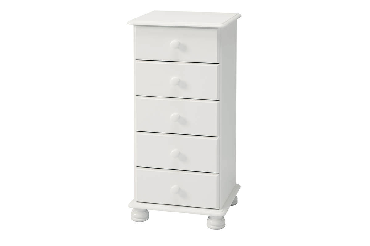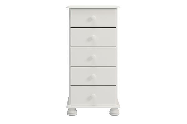 Smukła i wysoka komoda z kolekcji RICHMOND to doskonała propozycja dla tych, którym bliski sercu jest prosty i elegancki styl klasyczny. Pięć szuflad opartych na cichych i niezawodnych prowadnicach kulkowych z łatwością pomieści wszystko to, co nie powinno rzucać się w oczy. To idealny mebel do pracowni, sypialni, jadalni czy przedpokoju – w każdym z tych pomieszczeń okaże się niezbędny.
