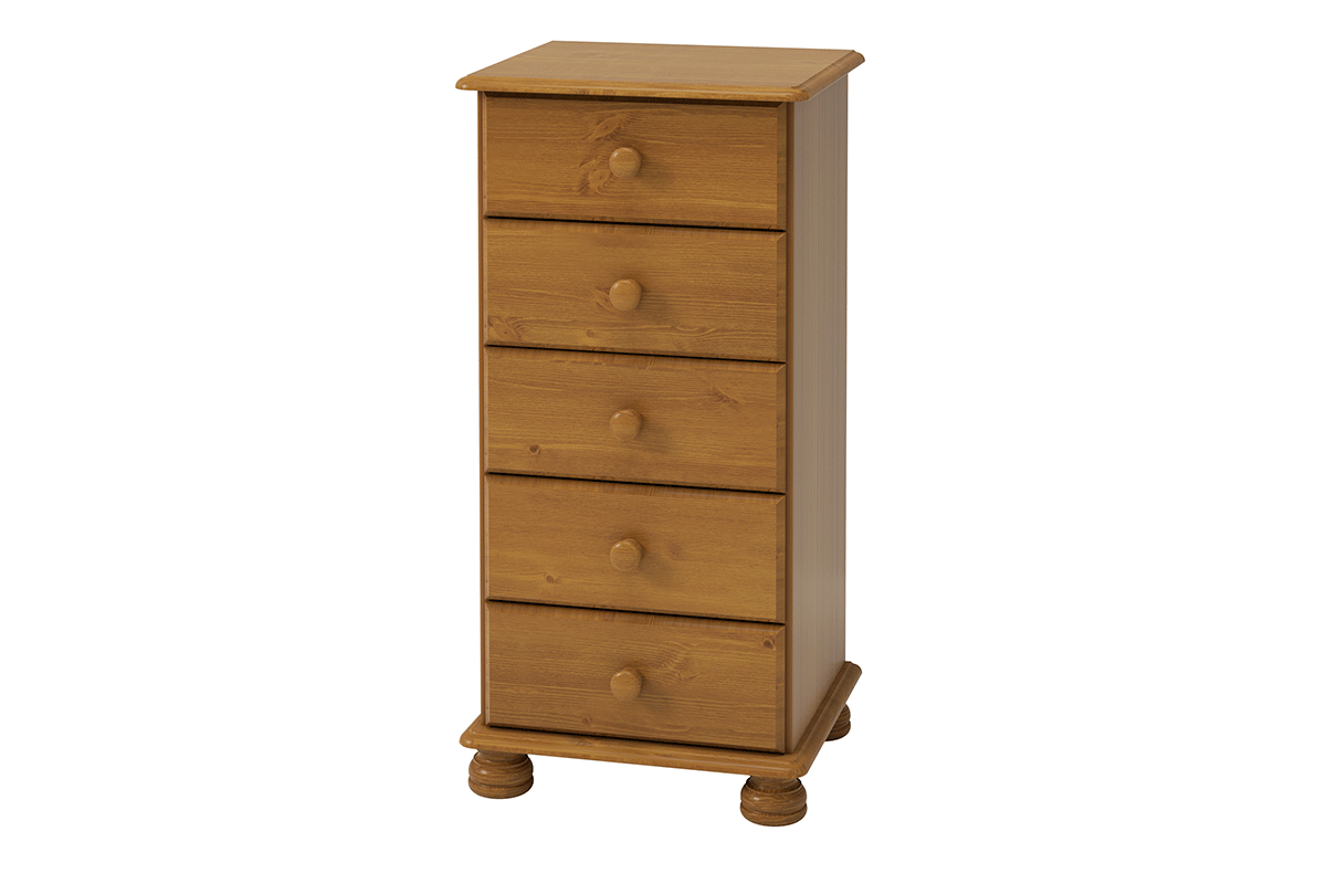Smukła i wysoka komoda z kolekcji RICHMOND to doskonała propozycja dla tych, którym bliski sercu jest prosty i elegancki styl klasyczny. Pięć szuflad opartych na cichych i niezawodnych prowadnicach kulkowych z łatwością pomieści wszystko to, co nie powinno rzucać się w oczy. To idealny mebel do pracowni, sypialni, jadalni czy przedpokoju – w każdym z tych pomieszczeń okaże się niezbędny.