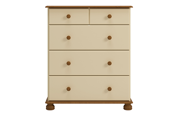 Wysoka komoda z kolekcji RICHMOND zaprojektowana została z myślą o tych, którzy poszukują praktycznego mebla, a jednocześnie doskonale prezentującego się wizualnie. Cztery większych rozmiarów szuflady oraz dwie mniejsze wyposażone zostały w ciche i bezawaryjne prowadnice kulkowe, co ułatwi korzystanie z komody. Ponadto najwyższej jakości materiały użyte do produkcji mebla pozwolą Ci cieszyć się nim przez długie lata.