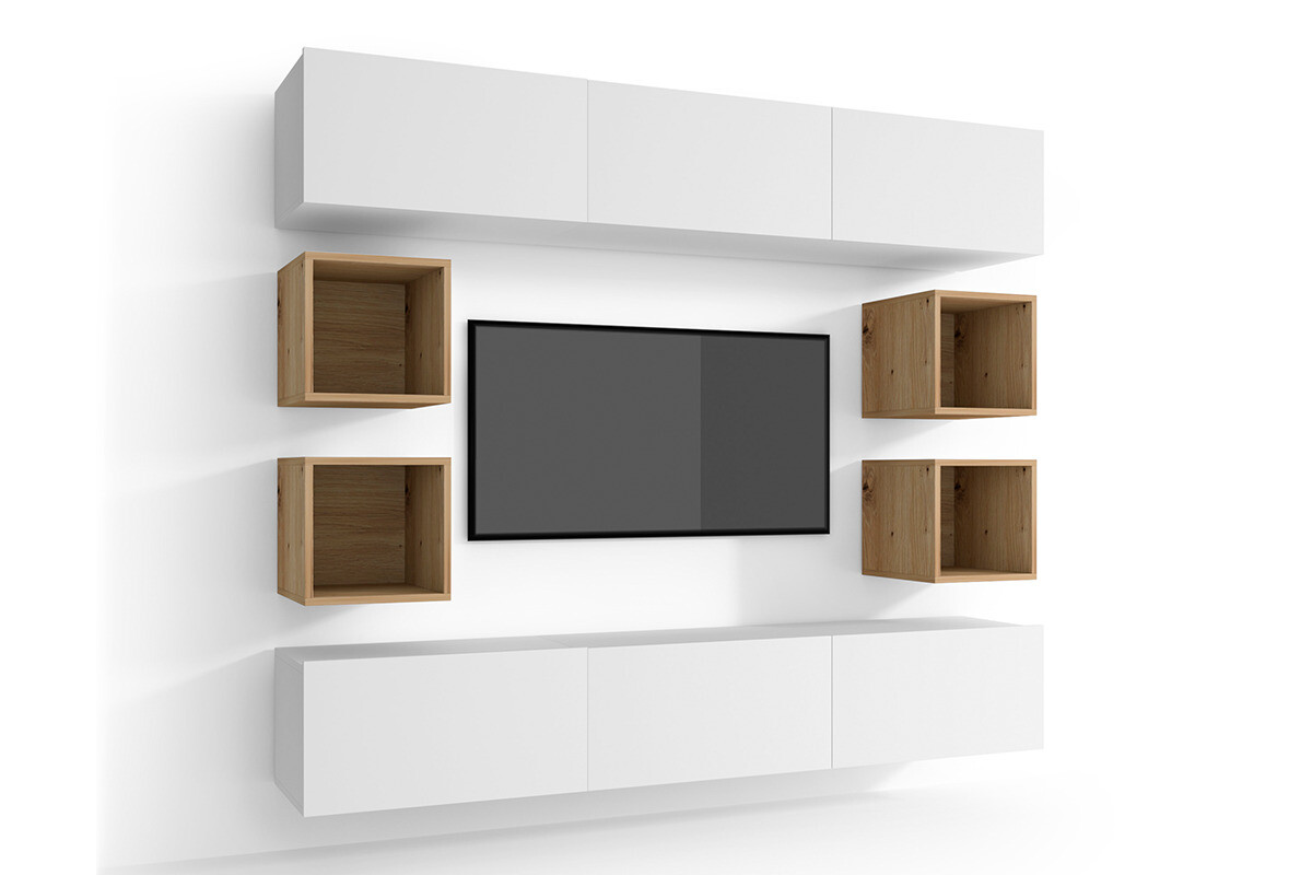 Zestaw mebli do salonu 10 el. MORIO - kolor biały/dąb naturalny