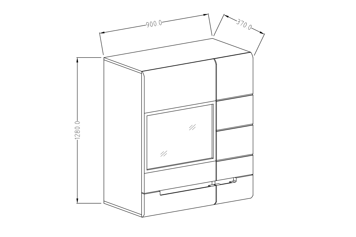 - Materiał fronty: płyta MDF 15 mm wykończona folią membranową
